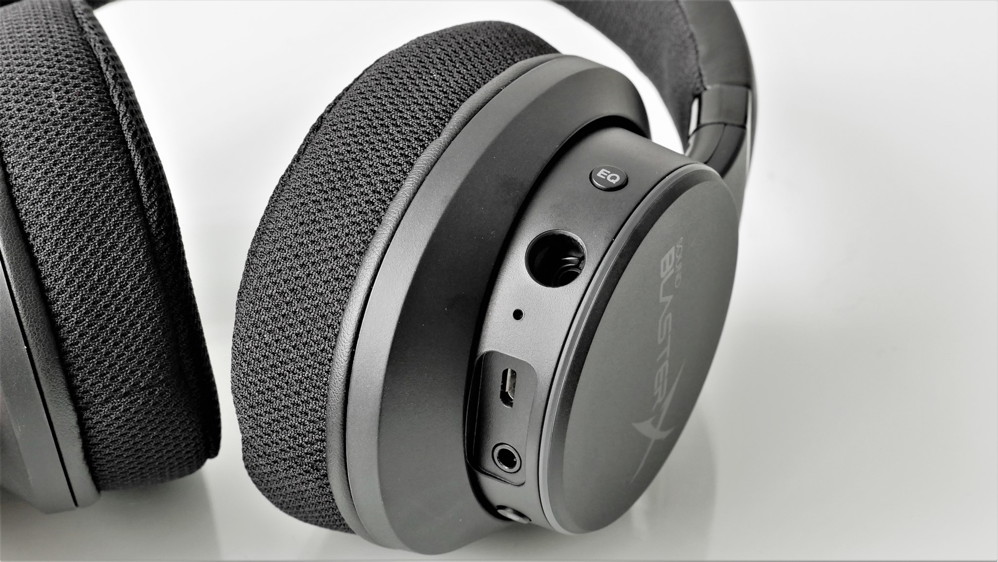 Pe cupa stângă avem portul microUSB, jack-ul combo de 3.5mm, jack-ul unde introducem microfonul detașabil, butonul EQ, butonul de activare/dezactivare a microfonului, rotița pentru reglarea volumului și butonul Monitoring.
