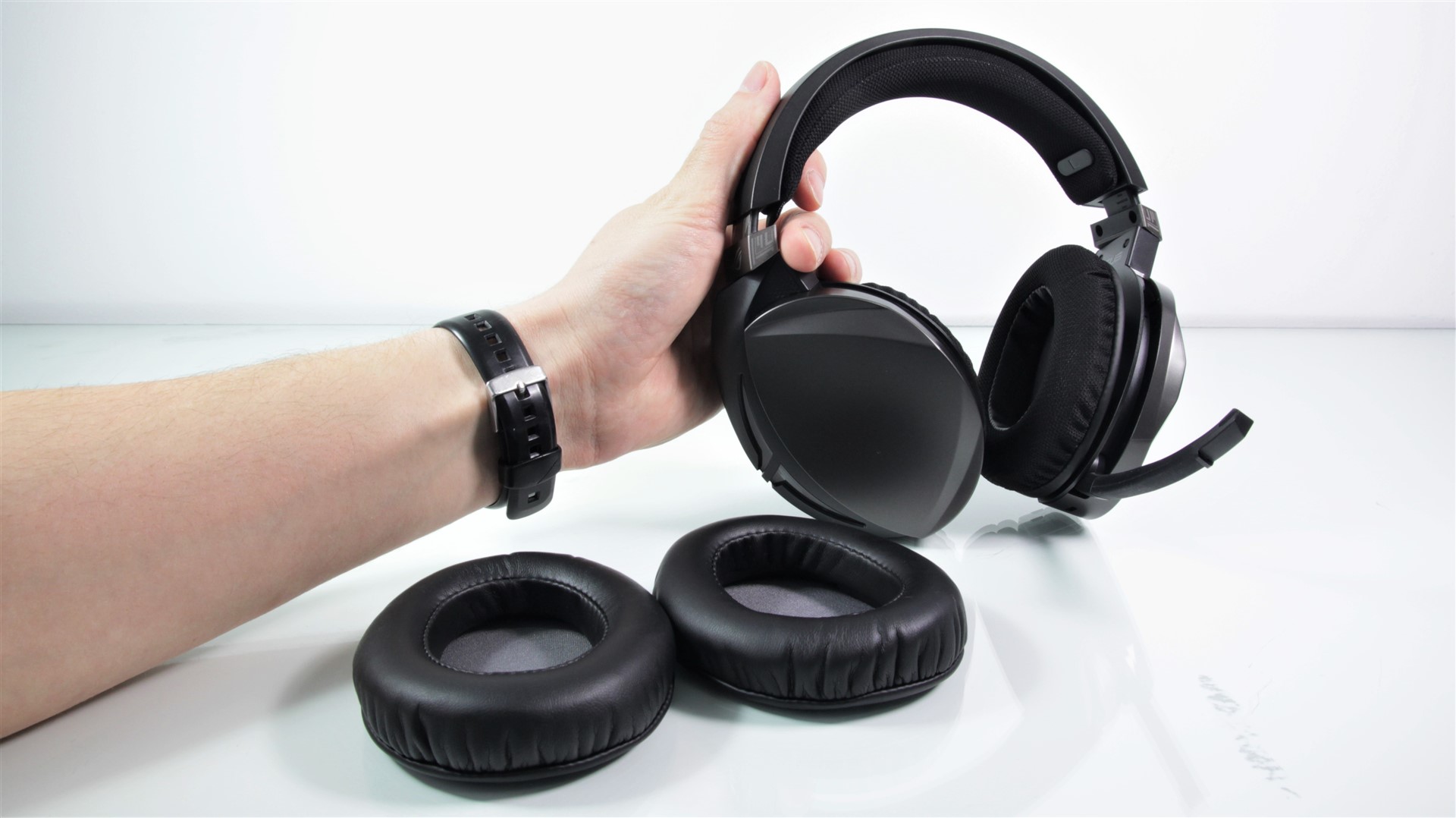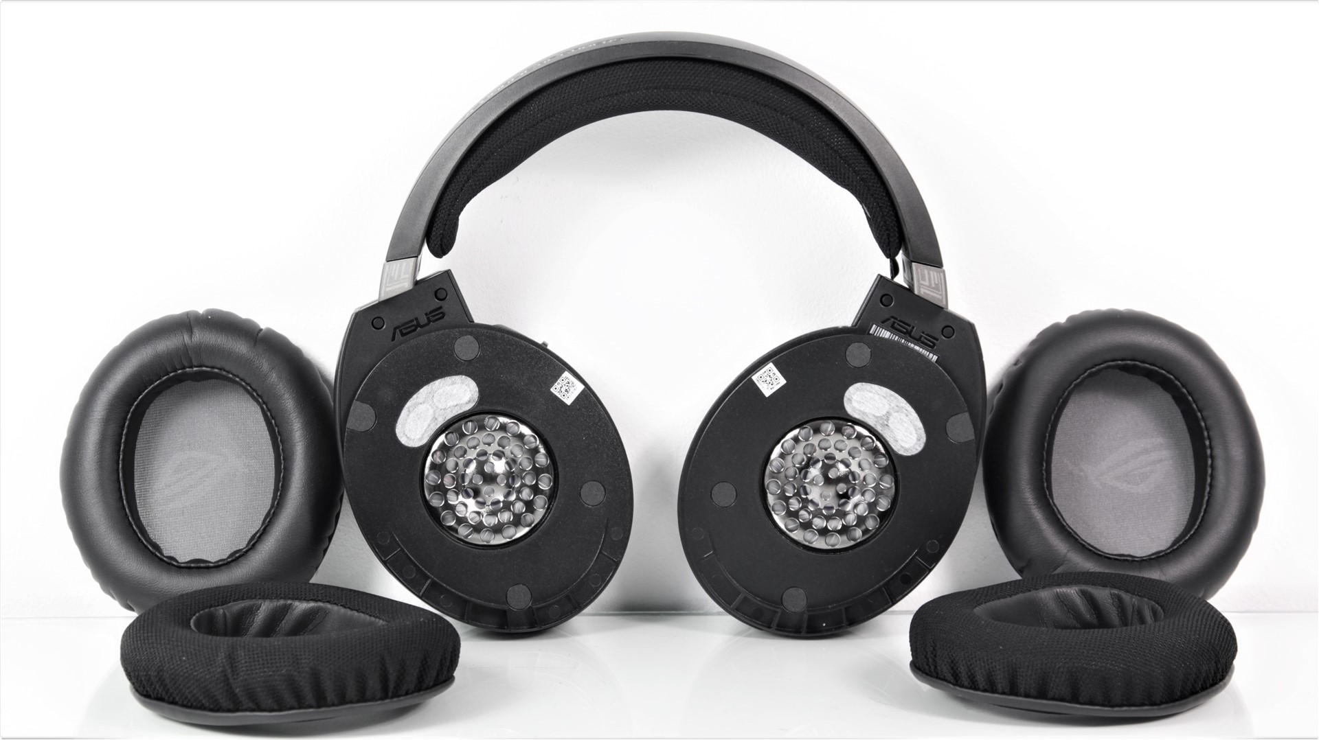 Căștile ASUS ROG Strix Fusion 300 vin din cutie cu o pereche de pad-uri din piele sintetică gata montate pe cupe. O a doua pereche din material textil tip mesh se găsește în pachet și poate fi montată de utilizator, după preferințe. Procesul de fixare durează doar câteva zeci de secunde pentru fiecare cupă.