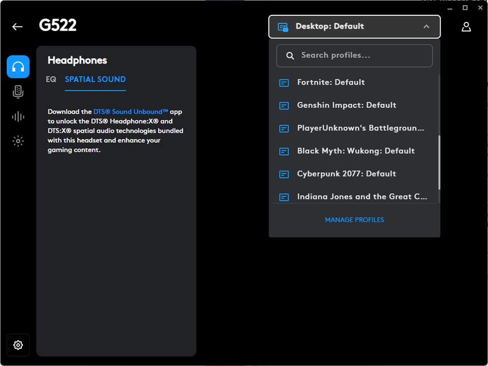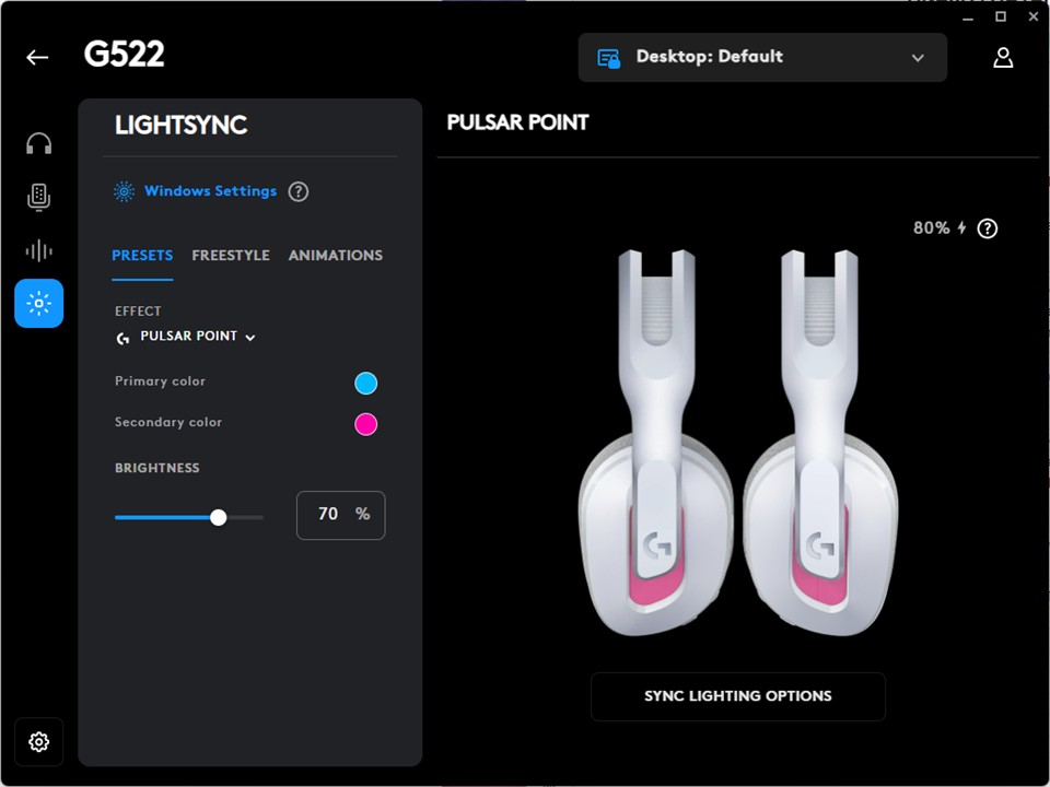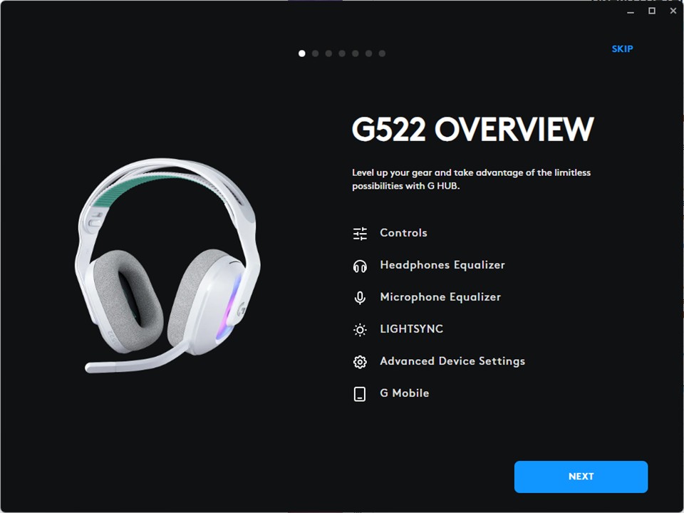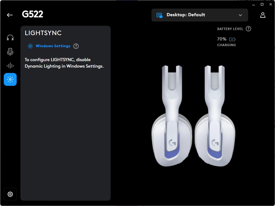Aplicația Logitech G HUB de Windows cu căștile Logitech G522 Lightspeed: