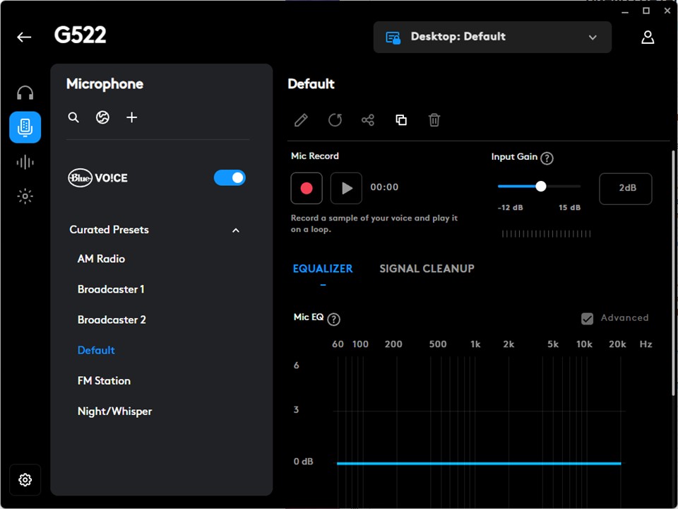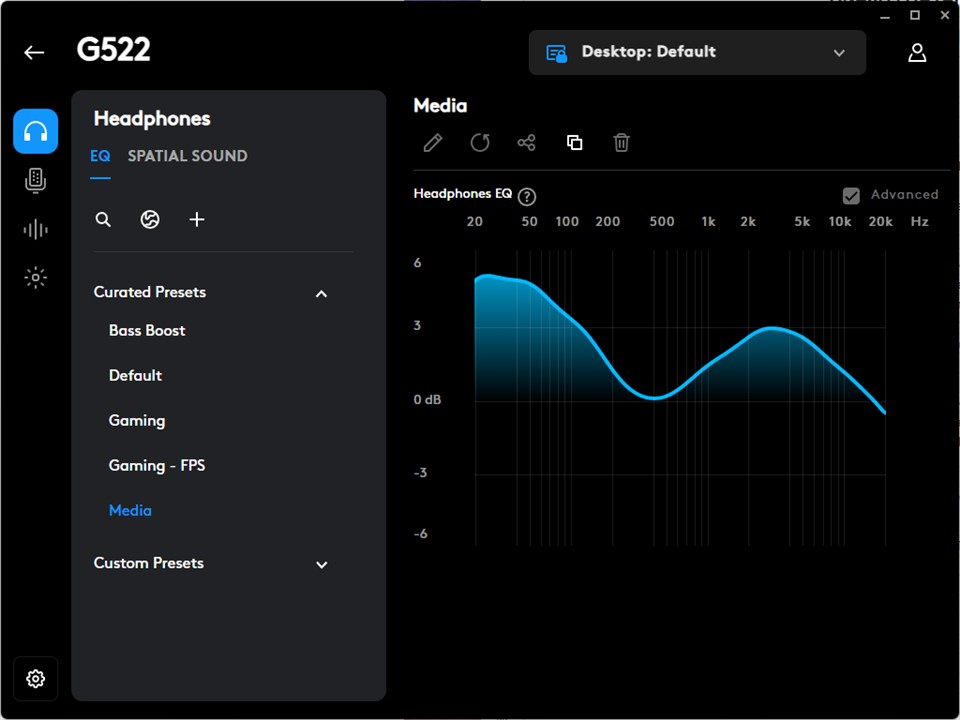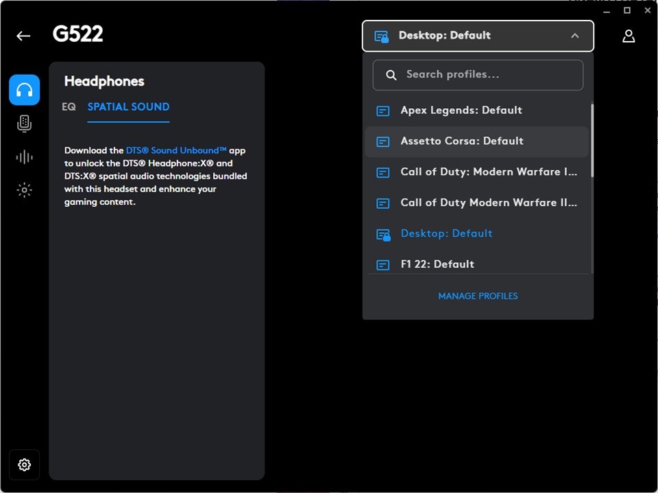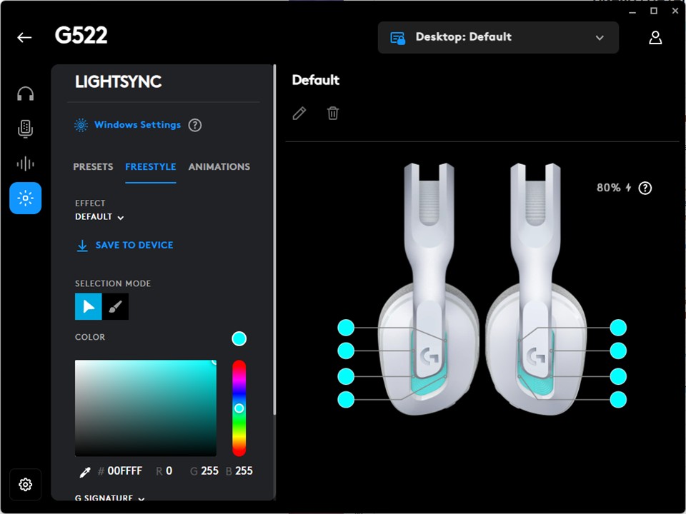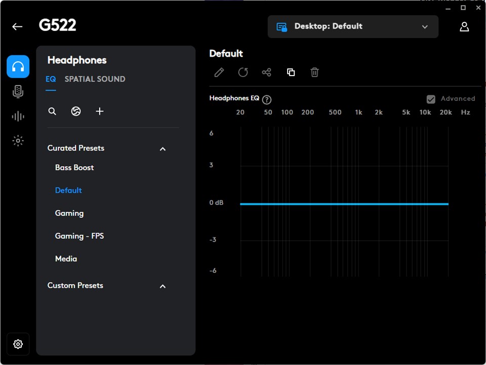 Aplicația Logitech G HUB de Windows cu căștile Logitech G522 Lightspeed: