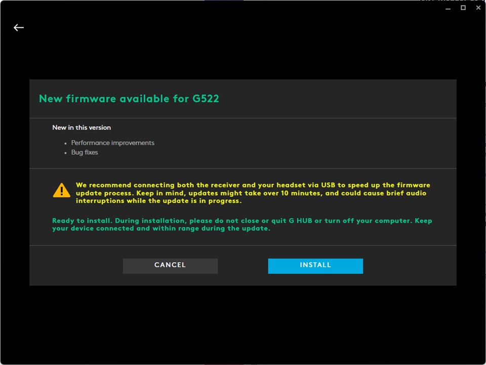 Printre capturile de ecran de mai sus observăm că am avut parte și de un update de firmware pentru Logitech G522 Lightspeed. Nu știu cum se comportau căștile înainte de această actualizare, dar, atât timp cât avem suport software, există șanse să avem parte de îmbunătățiri pe toate planurile în perioada următoare. Nu este o promisiune din partea mea, ci o simplă părere.