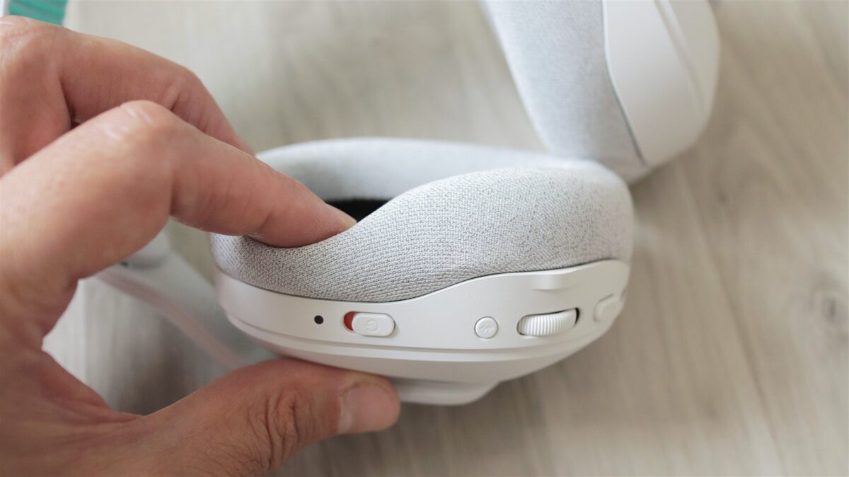 Logitech G522 Lightspeed arată ceva mai special în nuanța albă, față de clasicul negru. Din partea mea, albul scoate mai tare în evidență anumite caracteristici de design, iar când este adăugată o pată de culoare, precum în cazul de față cu banda textilă ce se așează pe cap, totul este și mai plăcut privirii.
