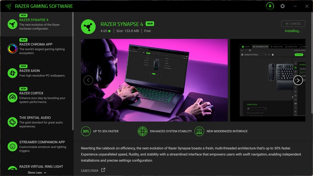 - ceva mai complicat (a se citi de durată) de instalat tot ce-ți trebuie pe PC prin aplicația Synapse 4 (aplicație plină de opțiuni folositoare, de altfel);