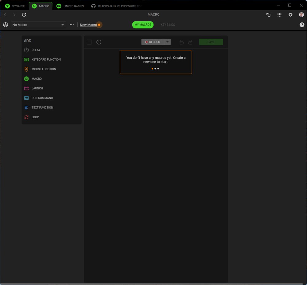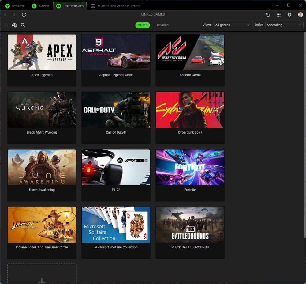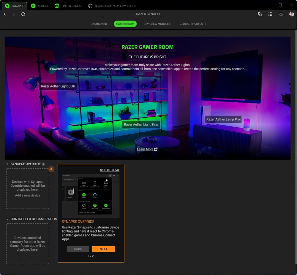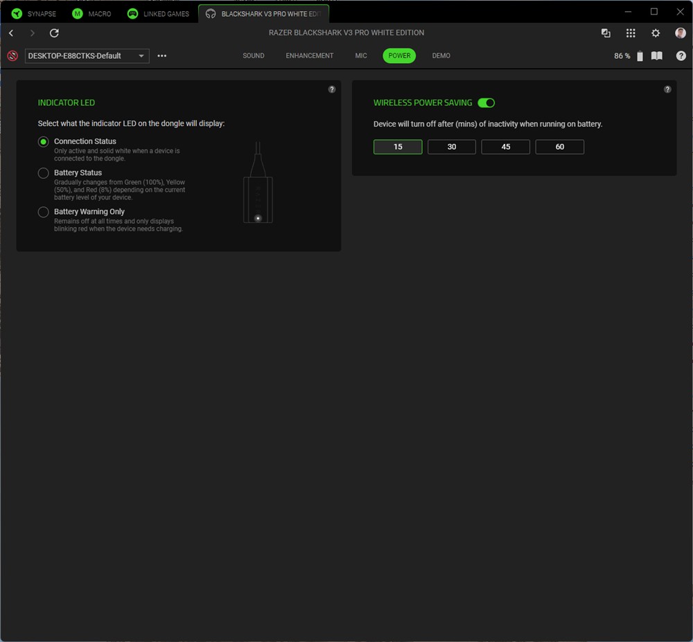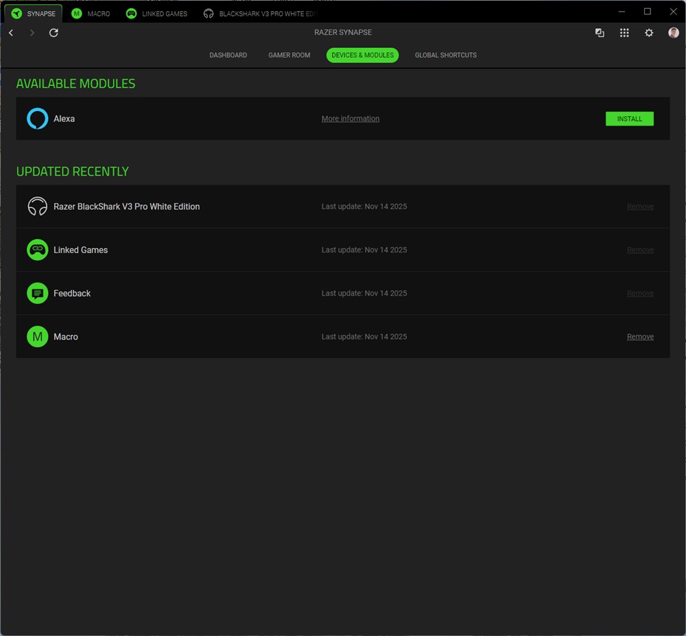 Capturi de ecran din Synapse 4 cu căștile Razer BlackShark V3 Pro: