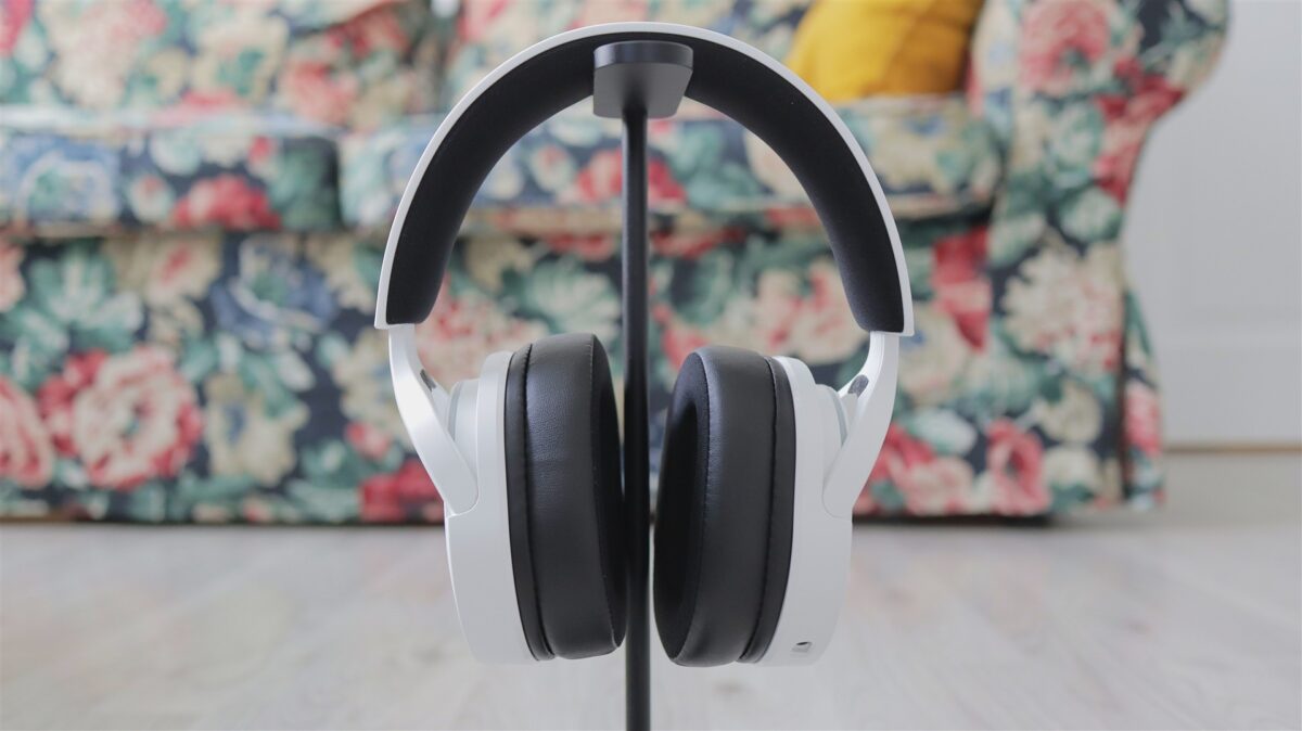Am primit exemplarul de test în cutia de retail, în care căștile vin alături de microfonul detașabil, care are și un filtru pop din burete, de adaptorul RF 2.4 GHz pe USB-A, cablu USB-C la USB-A (pentru încărcarea bateriei integrate), cablu cu mufe jack 3.5mm la ambele capete, ghid de pornire rapidă și un pliant cu informații legale.