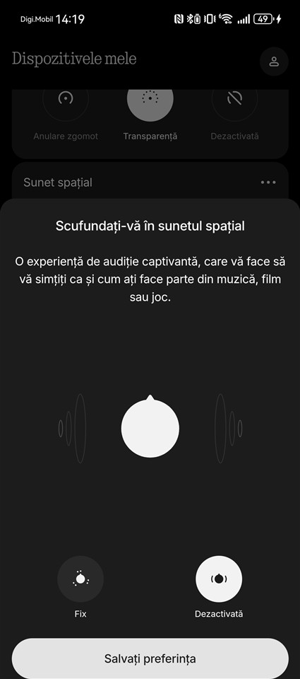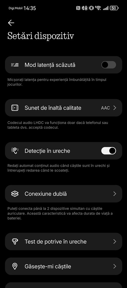 Trebuie să amintesc la acest capitol și de aplicația Nothing X, disponibilă gratuit atât în Google Play Store, cât și în Apple AppStore. Aceasta permite personalizare profundă nu doar a sunetului, ci și a întregii experiențe de utilizare. Mai mult detalii puteți descoperi din multiplele capturi de ecran din această aplicație pentru Android.