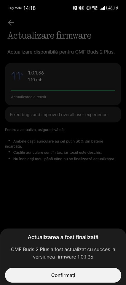 Tot la capitolul sunet trebuie să amintim și despre cum se prezintă CMF Buds 2 Plus (by Nothing) în apelurile de voce. Sunt în total 6 microfoane pe aceste căști (câte 3 pe fiecare unitate), așa că nu ar trebui să fie probleme pe această direcție. Sigur că nu toate preiau vocea, unele se ocupă de analiza zgomotelor de fond, dar oricum ar fi nu am primit niciun reproș de la partenerii de discuții telefonice. Și am folosit mult timp aceste căști, am preluat zeci de apeluri cu ele și nimeni, niciodată, nu mi-a transmis că nu m-ar auzi clar.