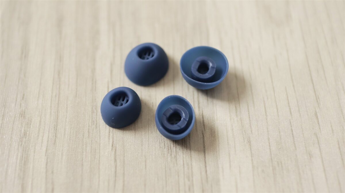 Vedem aici căștile în culoarea albastră, mai sunt disponibile și într-o nuanță de gri deschis. Apropo de culoare, totul, dar totul, este în această culoare de albastru spre bleumarin. Mă refer la carcasă, căști, manșoanele de urechi… Să zicem că interiorul carcasei este într-o nuanță ceva mai deschisă, dar tot albastru este peste tot. Asta nu însemnă că m-a deranjat pe mine cu ceva, este doar o constatare.
