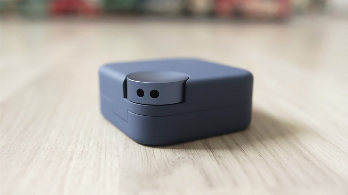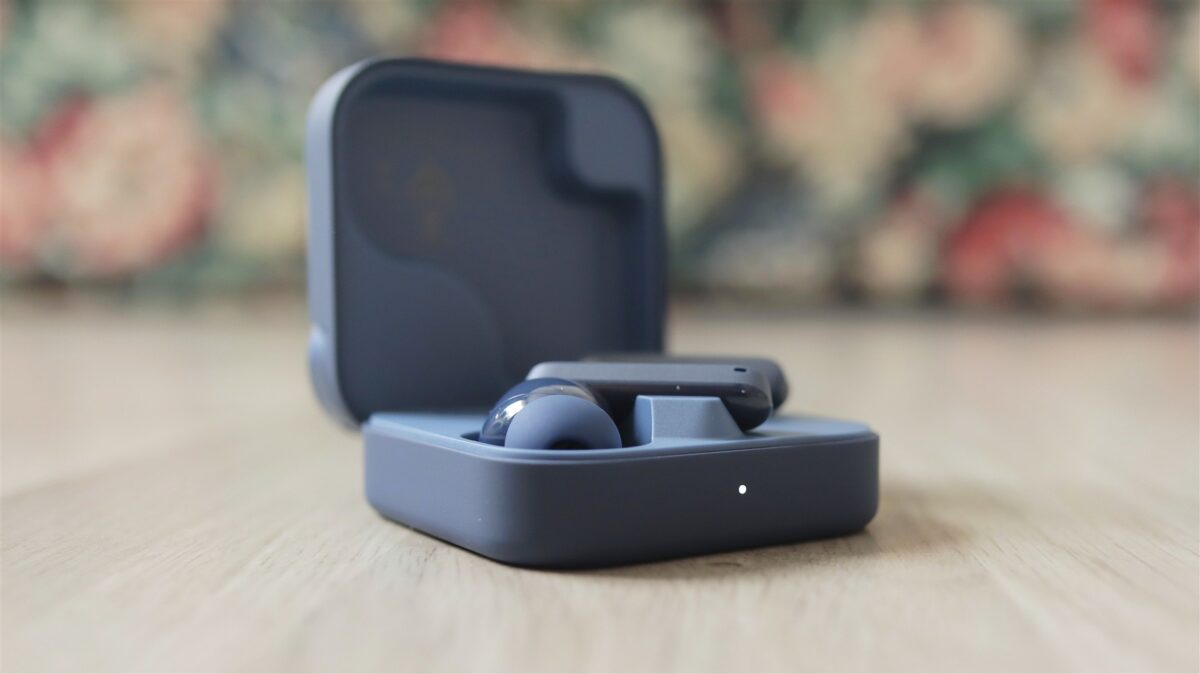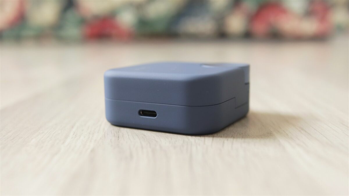 În fine, în rest, aparte de această rotiță care nu face nimic special, carcasa este una clasică, cu un LED de status prezent pe latura opusă celei unde este balamaua. Căștile se prind la locul lor în carcasă prin magneți, care sunt suficient de puternici cât să nu cadă căștile chiar și dacă întorci carcasa cu susul în jos,cu capacul deschis.