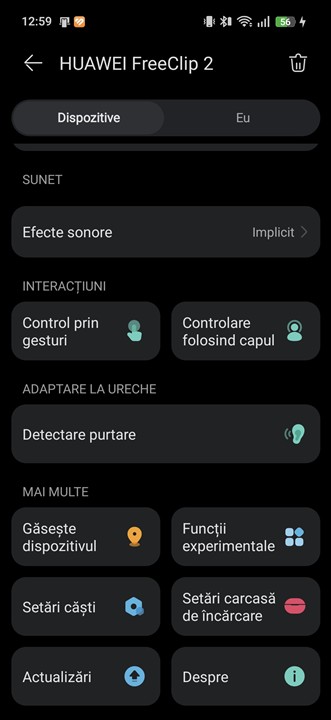 În fine, pentru a te bucura de tot ce-ți pot pune la dispoziție HUAWEI FreeClip 2 este neapărat nevoie să instalezi aplicația AI Life. Acolo sunt toate opțiunile de care ai nevoie spre a personaliza experiența de utilizare și sunetul, așa cum se poate vedea din capturile de ecran de mai jos.