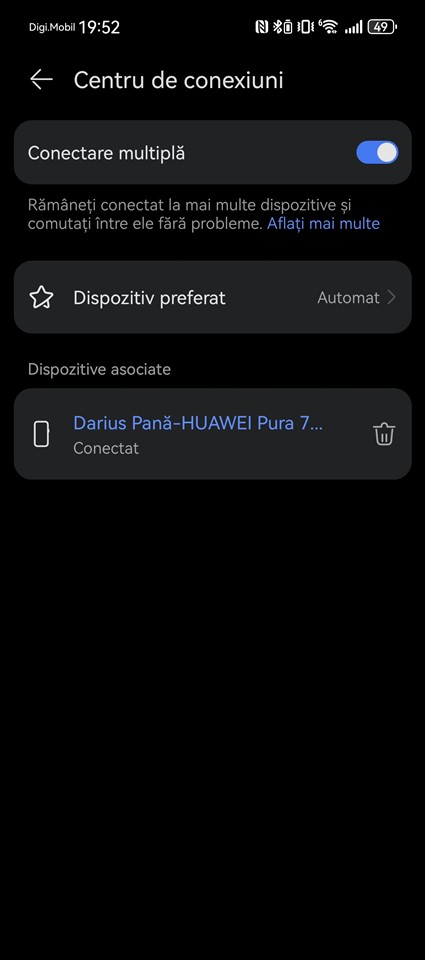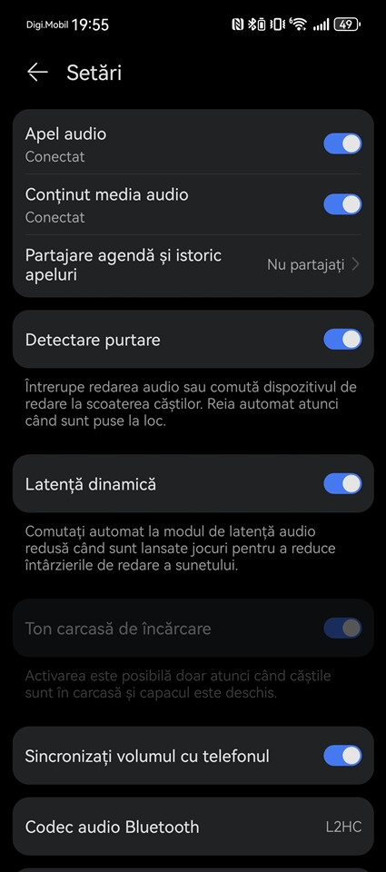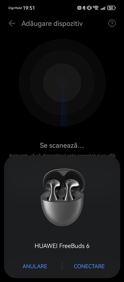 La conectivitate, nimic neapărat ieșit din comun pentru căști Huawei recente. Avem aceeași capabilitate de a avea două dispozitive conectate simultan la Huawei FreeBuds 6, dar și o rată a transmisiei de date de până la 2.3 Mbps (doar cu anumite dispozitive Huawei, adică cu unele dintre cele mai recente și mai performante telefoane și tablete).