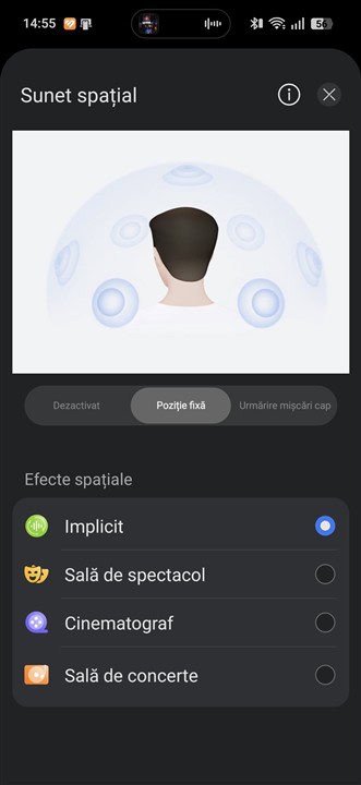 Nu am amintit până aici de funcția de sunet spațial, fiindcă pentru mine nu reprezintă decât o procesare peste anumite limite în speranța de a impresiona. Și va face asta, mai ales când activezi sunetul spațial în funcție de mișcările capului, dar pentru mine super procesarea sunetului nu este ceea ce apreciez. Îmi place să ascult muzica sau coloana sonoră a filmelor fix așa cum au fost ele realizate de autori, fără implicări software care își doresc să-ți lase impresia că ai mult de două căști, câte una în fiecare ureche. Da, sunetul spațial are sens și face ce trebuie prin boxe împrăștiate prin toată camera… În fine, cred că m-am făcut înțeles.