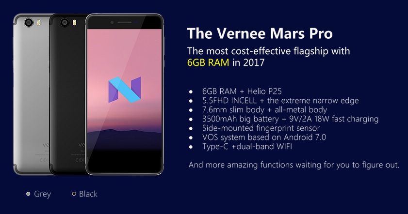 Pentru o scurtă perioadă de timp cei 6 GB RAM s-au folosit pe terminale high-end, însă de câteva luni bune această cantitate de memorie RAM a început să apară şi în zone mai accesibile ca preţ. La 1 an şi 3 luni după Xivo XPlay 5 a fost anunţat oficial cel mai ieftin telefon cu 6 GB RAM: Vernee Mars Pro. În perioada 26 – 30 iunie acesta poate fi achiziţionat pe gearbest.com la super preţul de 174.99 dolari după aplicarea codului MARSPRO. Pentru aproximativ 715 lei fără TVA primiţi un device complet: