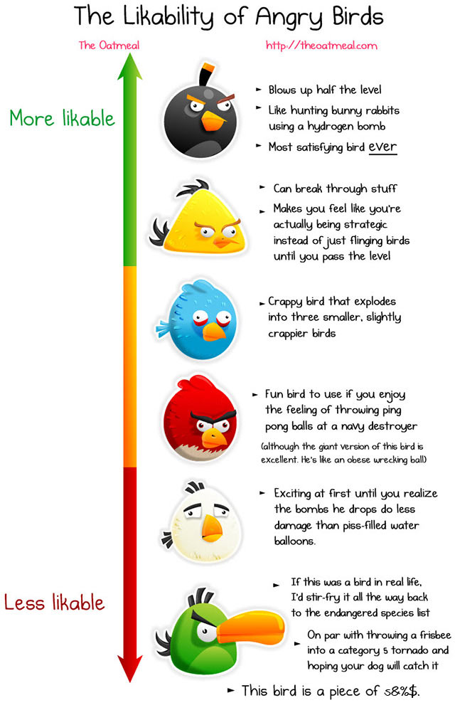 Cei de la Oatmeal au realizat un top cu cei mai îndrăgiți Angry Bird.