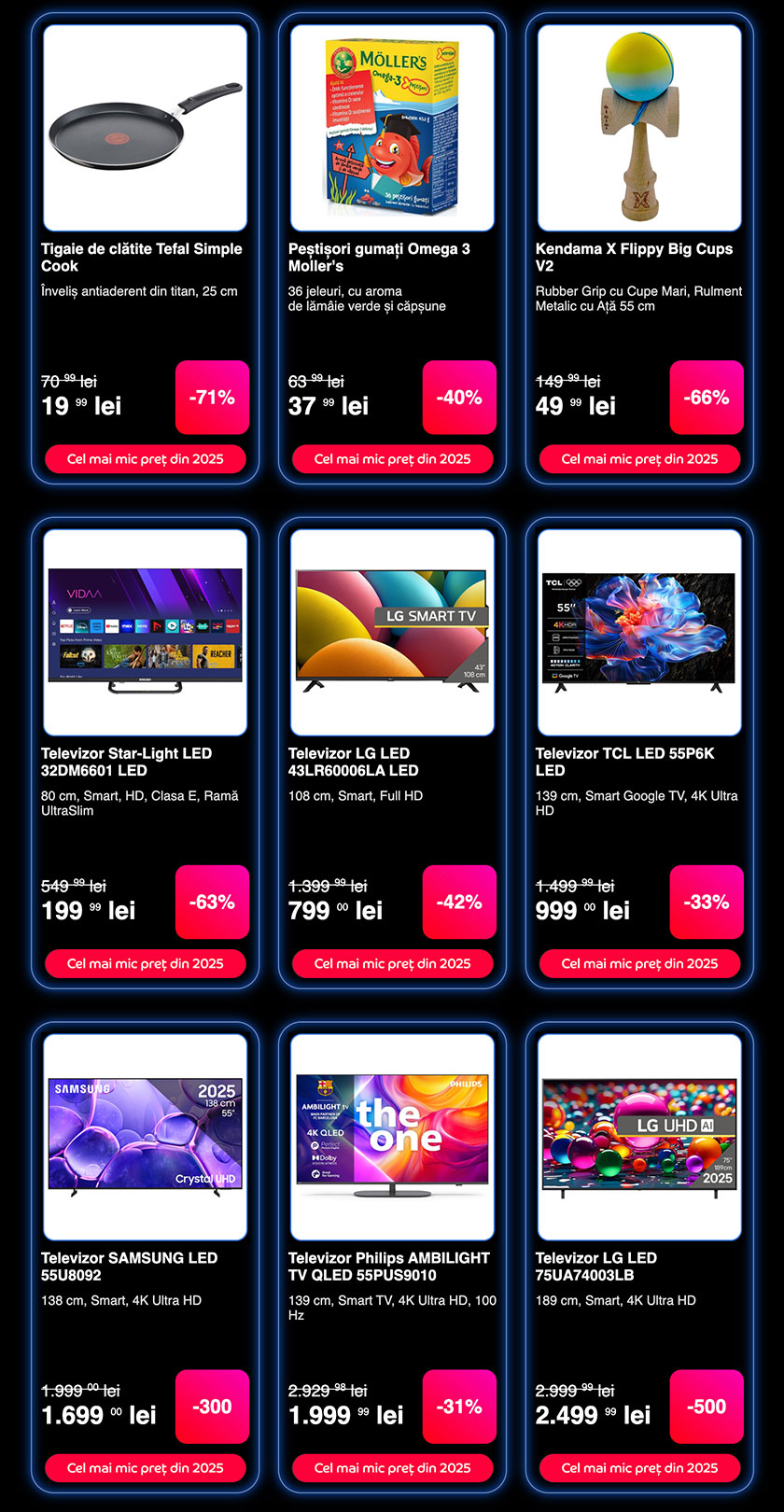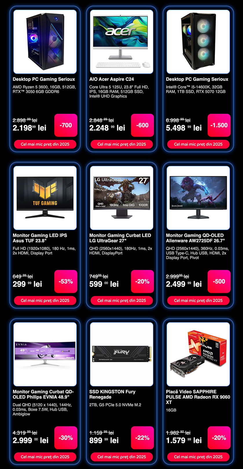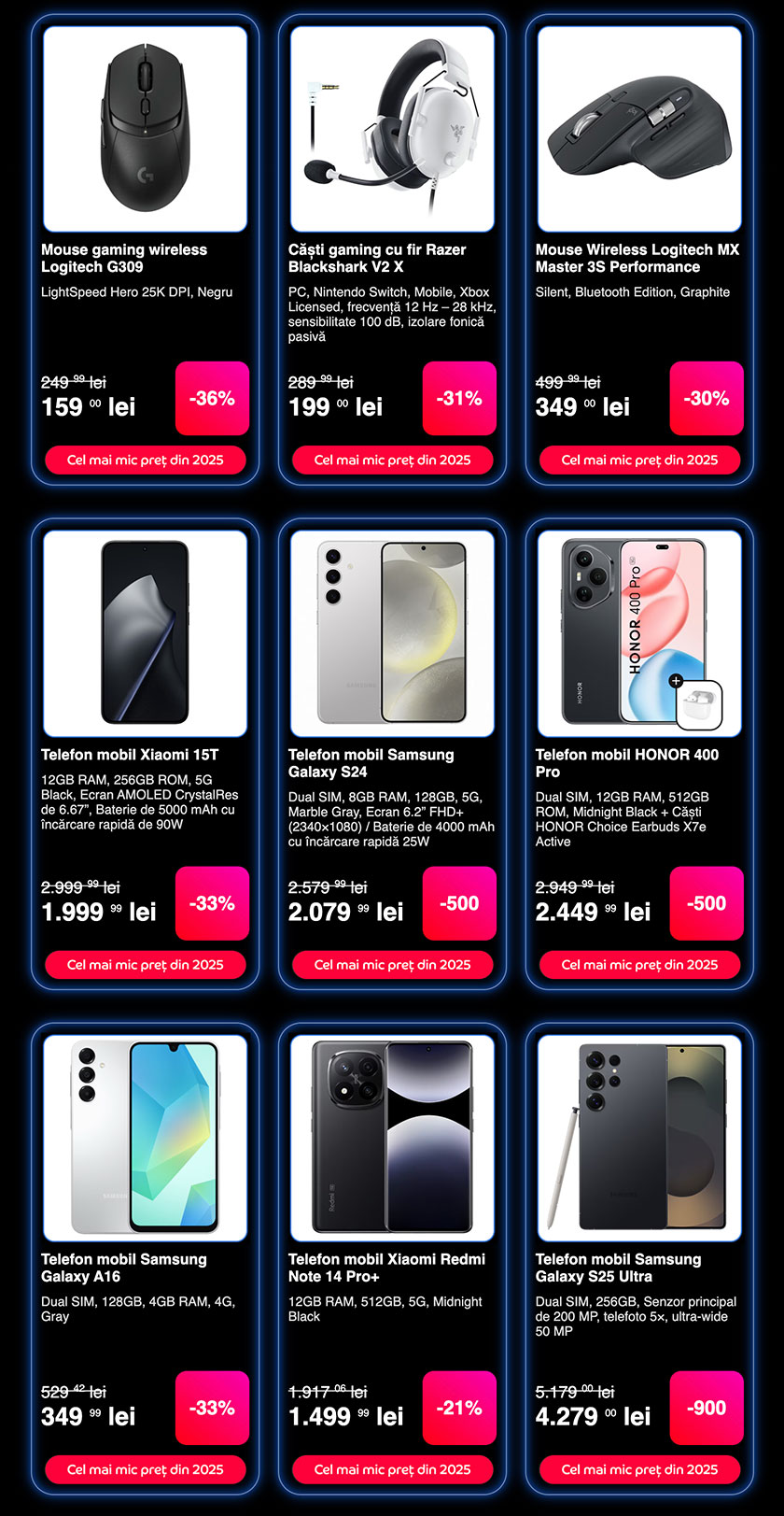 Black Friday 2025 se desfășoară la eMAG pe mâine dis-de-dimineață, iar o suită de oferte ați descoperit pe pagina de ghid.