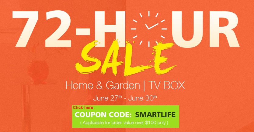 Aplicaţi codul SMARTLIFE pentru toate comenzile de peste 100 dolari din categoriile Home & Garden şi TV Box şi veţi primi garantat o reducere de 5 dolari. Iată ce puteţi cumpăra: