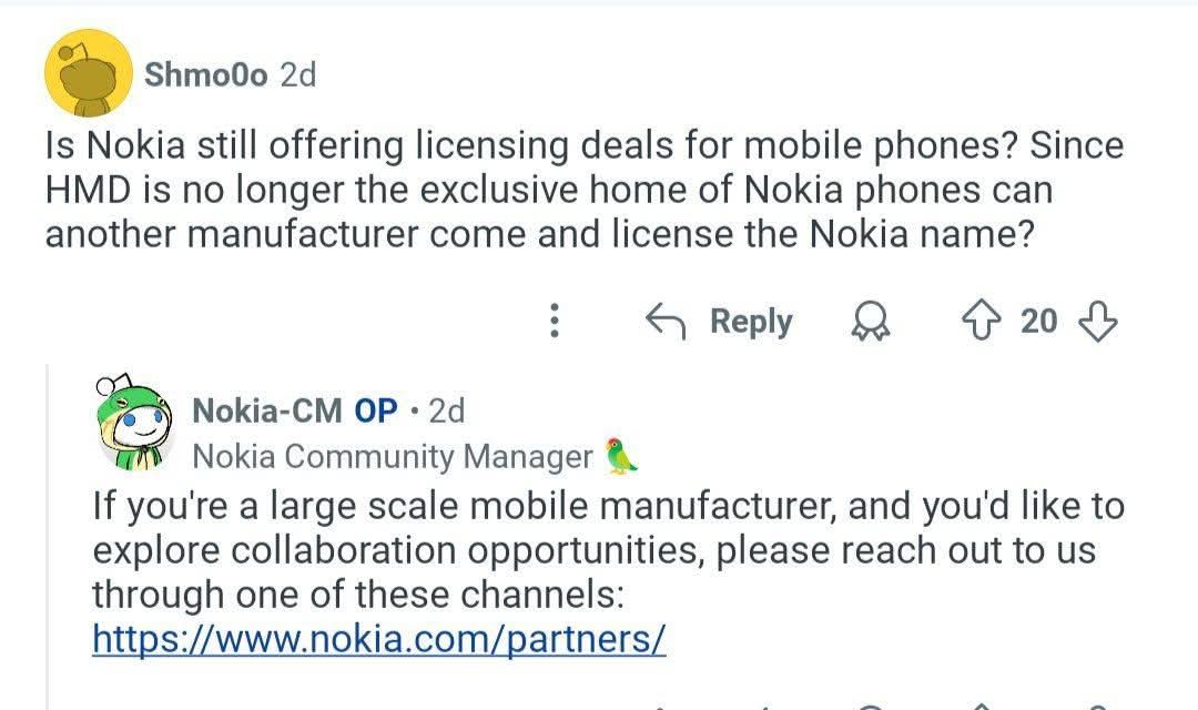 Pe site-ul nokia.com apar disponibile secţiunile Partners şi Licensing, iar reprezentanţii Nokia caută un partener cu capacitate de producţie industrială (în continuare ei se văd un brand puternic, capabil să vândă milioane de unităţi pe an).