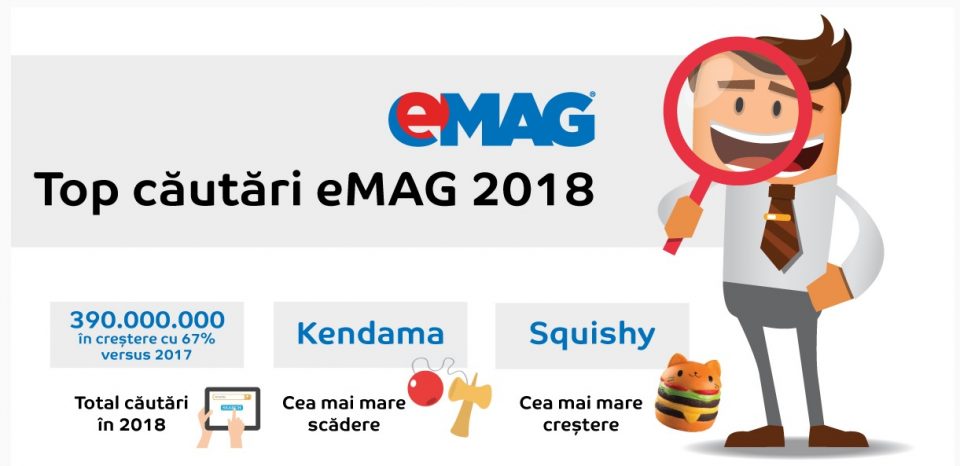 - Aproximativ 390.000.000 căutări în 2018 pe site-ul eMAG, adică o creştere cu 67% comparativ cu anul anterior;
