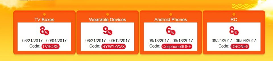 Unul dintre cei mai activi retaileri din China este geekbuying.com, iar până pe 28 august acest comerciant organizează campania promoţională “Pre-Fall Sale”. Evenimentul este împărţit pe mai multe segmente astfel: