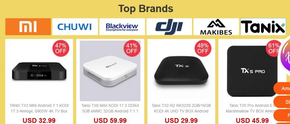 Brandurile de top ale acestei campanii sunt Xiaomi, Chuwi, Blackview, DJI, Makibes şi Tanix. Ca exemple în această categorie avem: