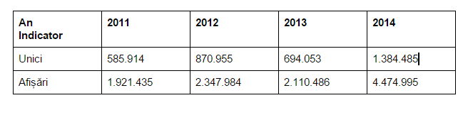 Și o comparație în ce privește numărul de unici și afișările pe 2011, 2012, 2013 și 2014: