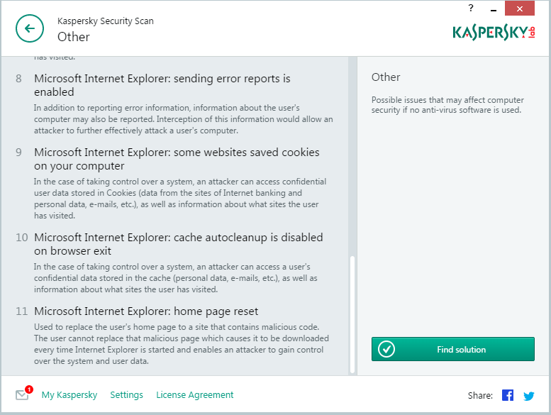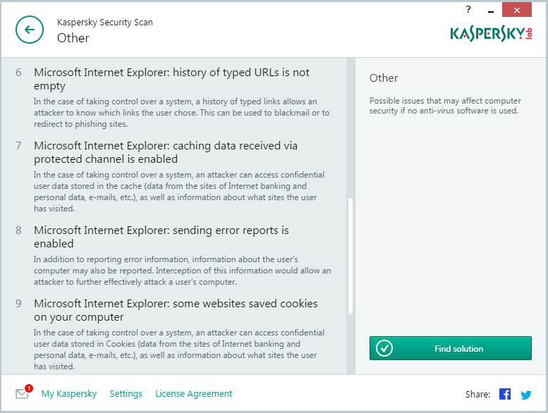 Kaspersky Security Scan nu este un antivirus, ci doar un software ce scanează sistemul vostru, după care vă arată problemele găsite și propune soluții pentru rezolvarea lor. Îl puteți descărca gratuit de aici. Fișierul măsoară 68.5 MB și durează câteva momente să-l instalați.