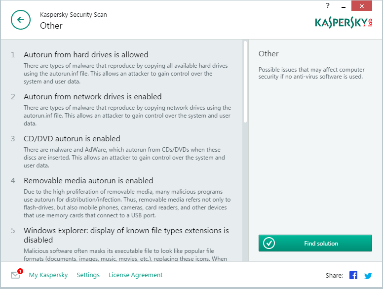 Kaspersky Lab ne anunță că au lansat cea mai nouă versiune a programului Kaspersky Security Scan, disponibil gratuit pentru Windows. Scannerul detectează atât software-ul periculos cât și setările sistemului de operare care expun dispozitivul la vulnerabilități.