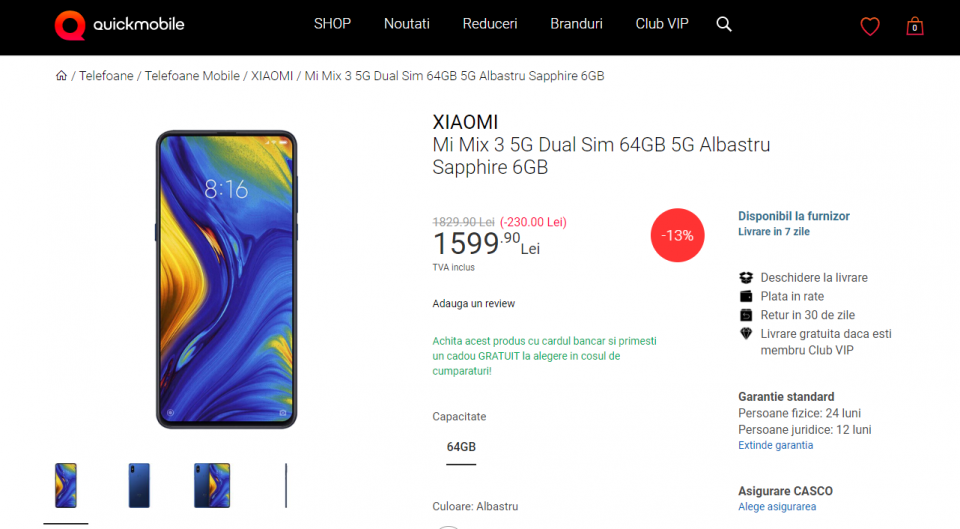 În urmă cu câteva zile, Xiaomi Mi Mix 3 5G cu 128 GB stocare era pe la sub 2000 lei și la PC Garage. Acum remarc că l-au repoziționat la peste 2800 lei, în linie cu prețul practicat de către shop-urile ce-l aduc printr-un distribuitor autorizat. Presupun că PC Garage îl avea ca furnizor pe QuickMobile în momentul respectiv. Cine știe, poate le-a scăpat vreo ofertă de Black Friday înainte de termen. :)