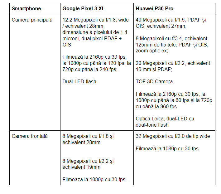 Câteva detalii legate de ansamblul de camere implementat pe Pixel 3 XL și Huawei P30 Pro: