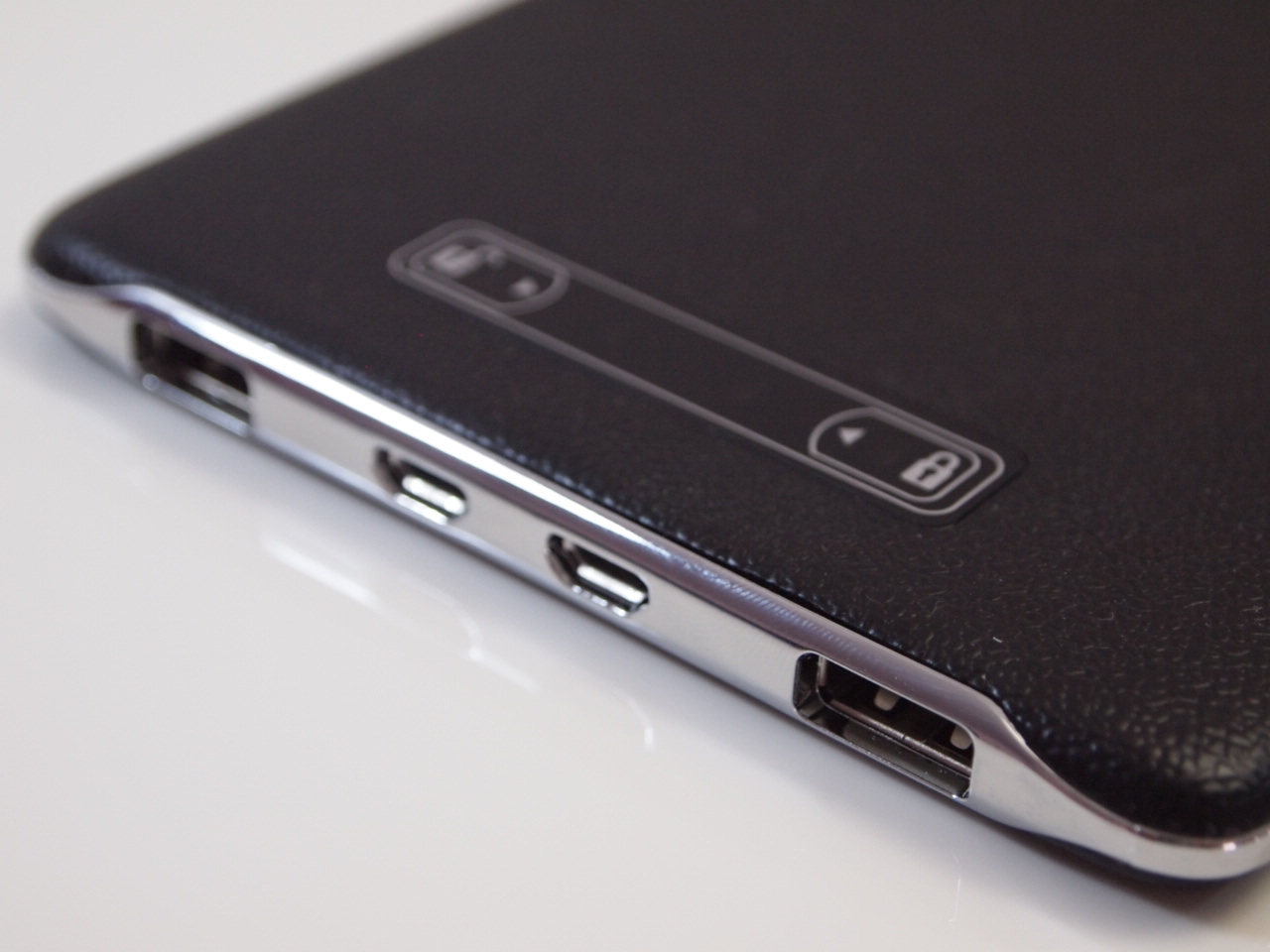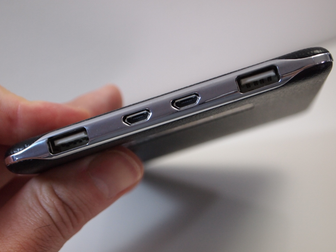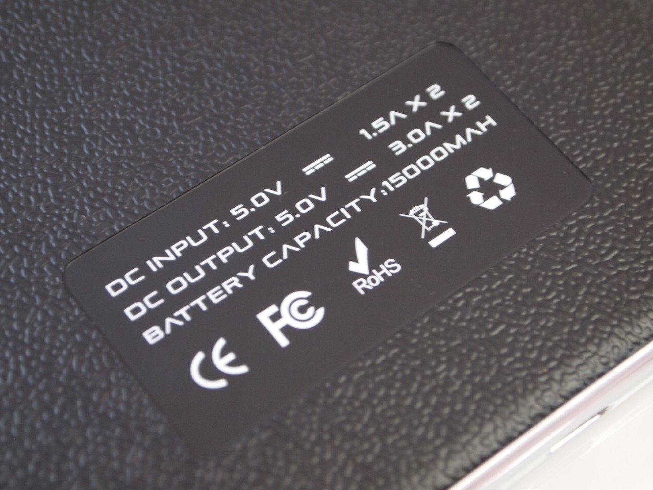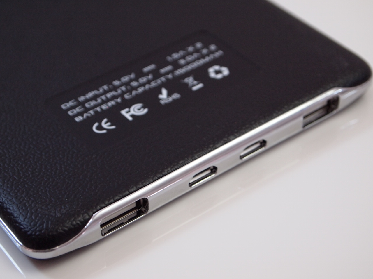 Marginile sunt fabricate din metal, iar pe laterala de jos se regăsesc cele patru mufe: două USB către exterior și între ele două microUSB. Pe partea din față se află scrise denumirea producătorului și modelul bateriei, iar mai jos sunt controalele tip ”slide” și cele patru leduri. Pe spate sunt trecute câteva informații legate de curentul de intrare, cel de ieșire și capacitatea maximă a acumulatorului.