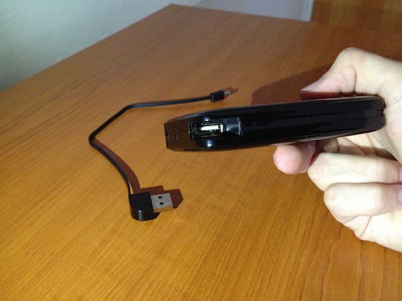 Bateria este inconjurată de un cablu, cablu ce se conectează la adaptorul menţionat mai sus şi stă fixat în baterie prin USB. Acesta se poate detaşa complet şi se poate introduce orice alt tip de cablu pe USB. Mi-a plăcut foarte mult această simplitate – un cablu, un adaptor şi un port USB standard. După cum am spus, aceşti factori fac din Colia Power.QYG 6000 o baterie externă foarte portabilă şi foarte simplu de utilizat.