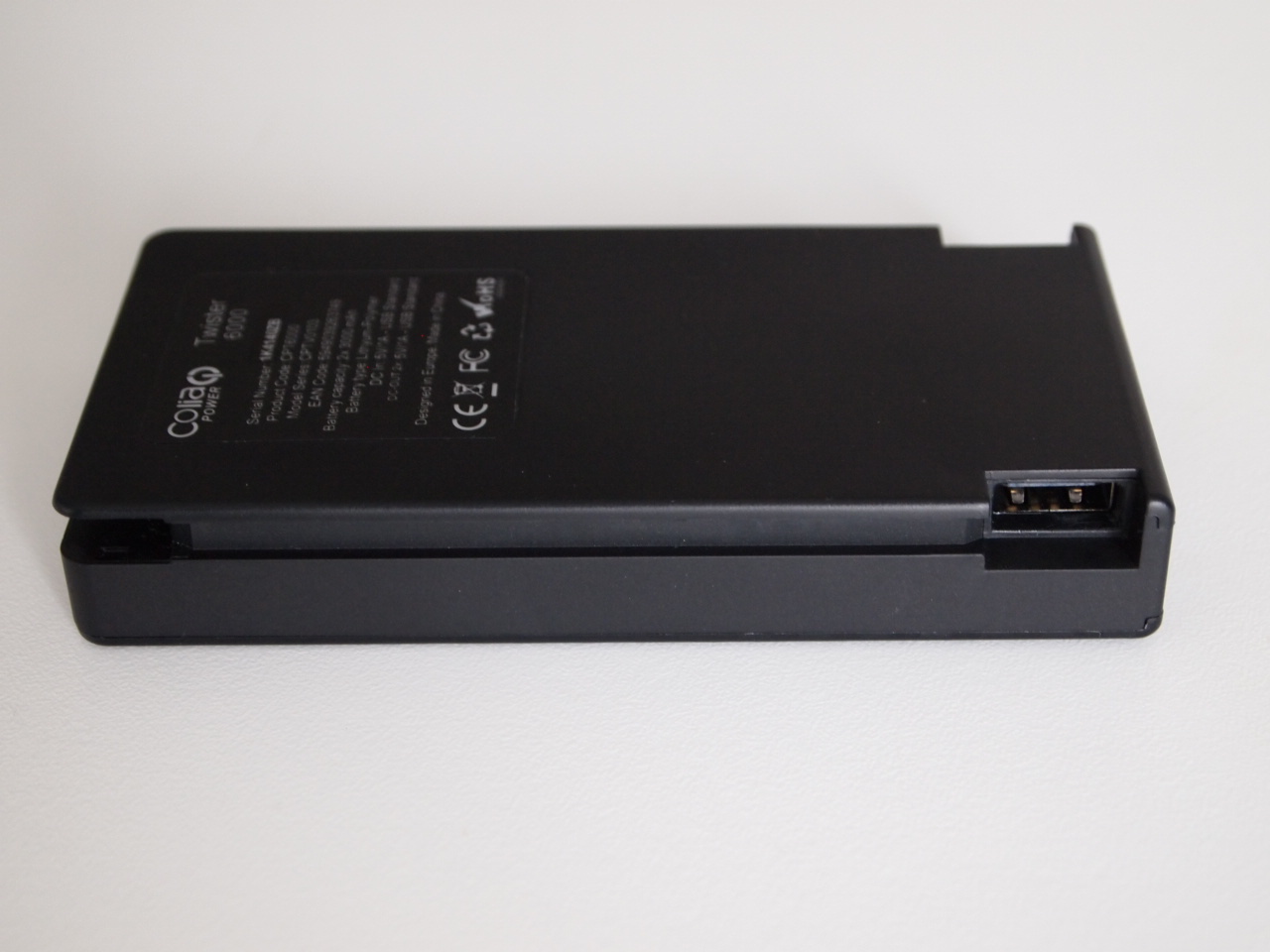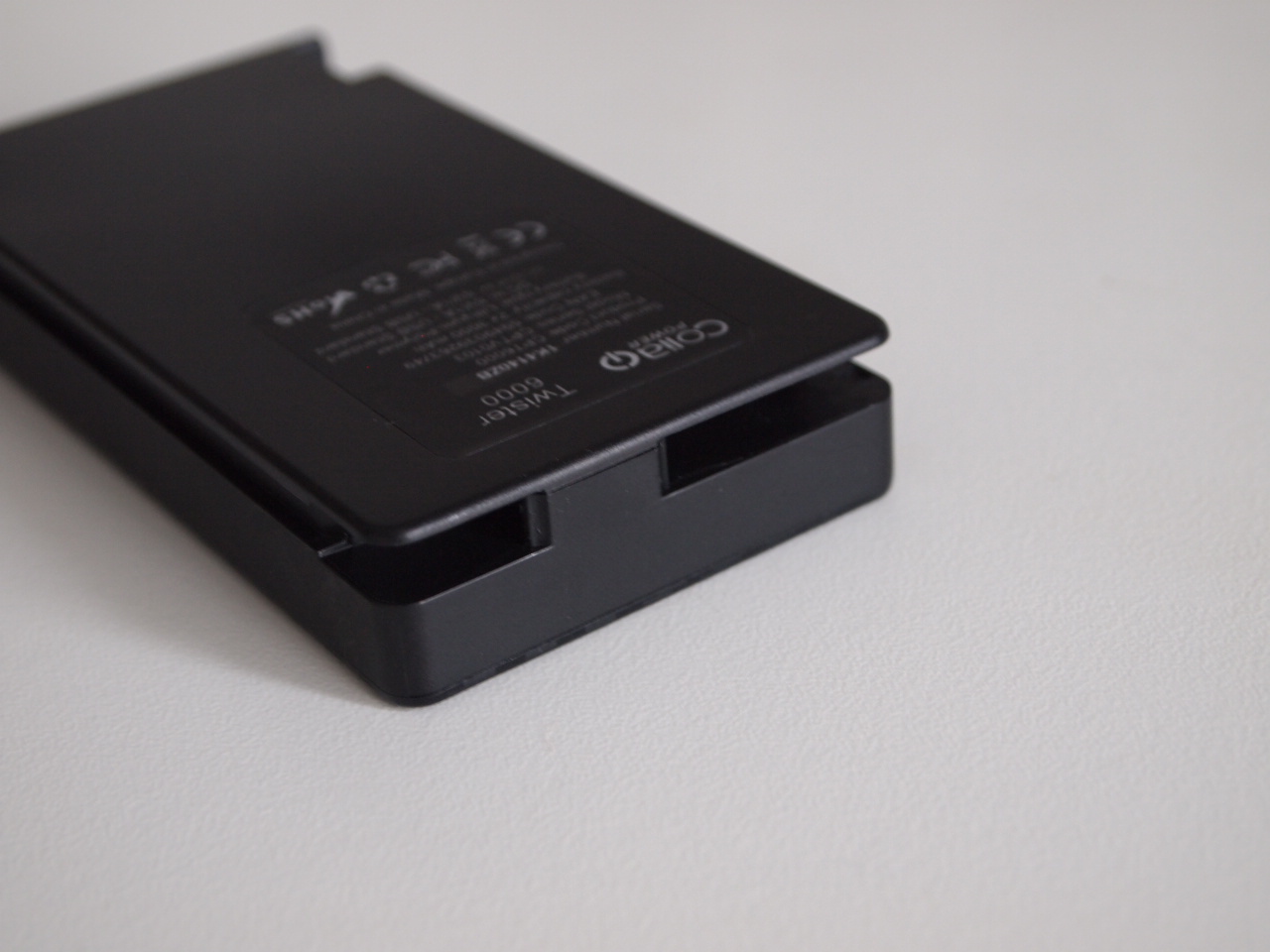 Lateralele bateriei adăpostesc două dintre cele trei cabluri din pachet. Se fixează bine și nu există șanse prea mari să se desprindă fără să vrem asta. Ambele mufe USB sunt pe laterale (simetric pe stânga și dreapta) spre marginea de jos. Aici, pe laterala de la bază, este poziționat și portul microUSB prin care-l putem încărca pe Colia.Power Twister 6000.