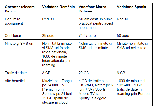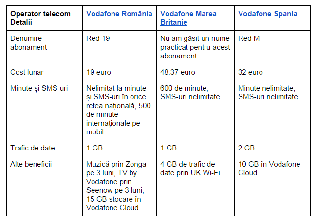 Vodafone este un operator telecom prezent direct în România, Marea Britanie și Spania. Am ales să prezint oferta de abonamente 4G în cele trei state.