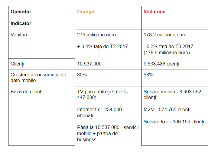Comparație între rezultatele financiare înregistrate de Orange și Vodafone în aprilie – iunie 2018