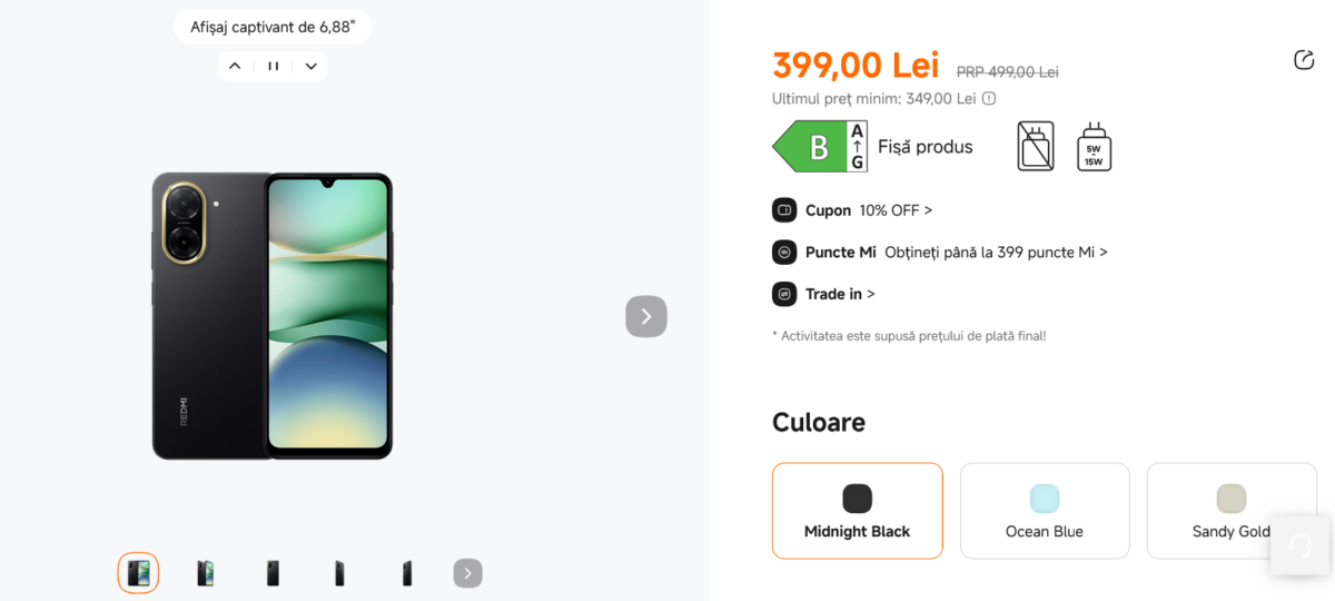 - smartphone Xiaomi Redmi A5 cu 64 GB stocare la 399 lei;