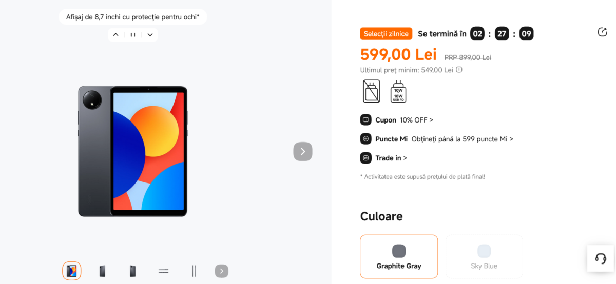 - tableta Xiaomi Redmi Pad SE 8.7 4G cu 128 GB stocare la 599 lei.
