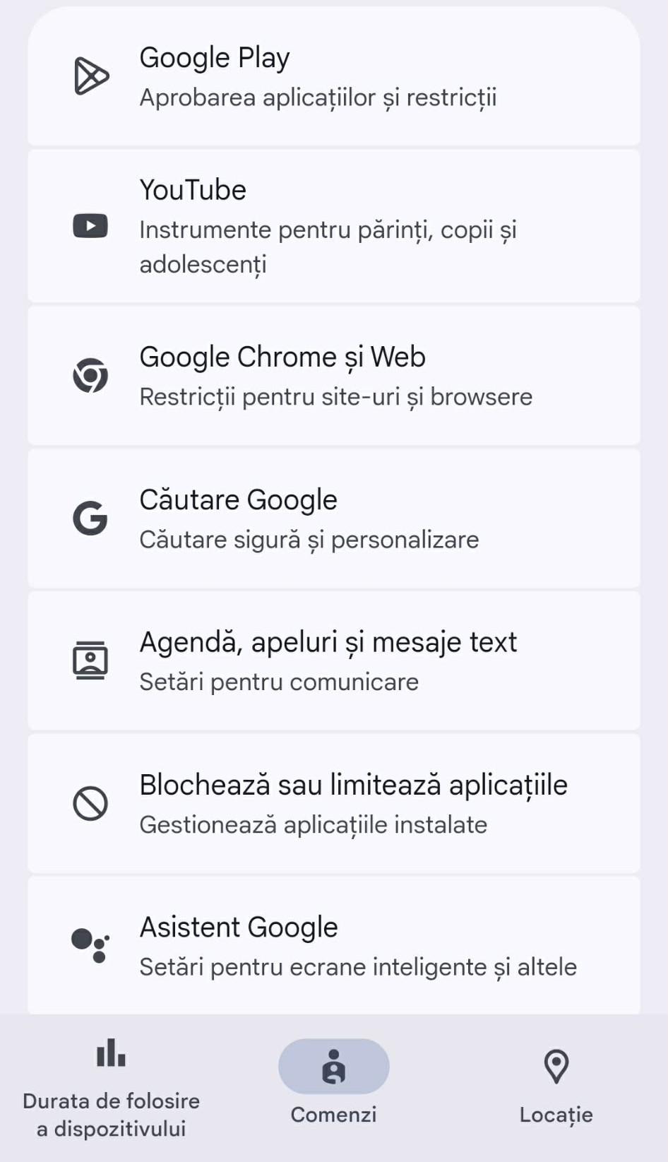 Dacă aţi terminat toate aceste etape, puteţi intra în aplicaţia Google Family Link, iar aici vă jucaţi cu:
