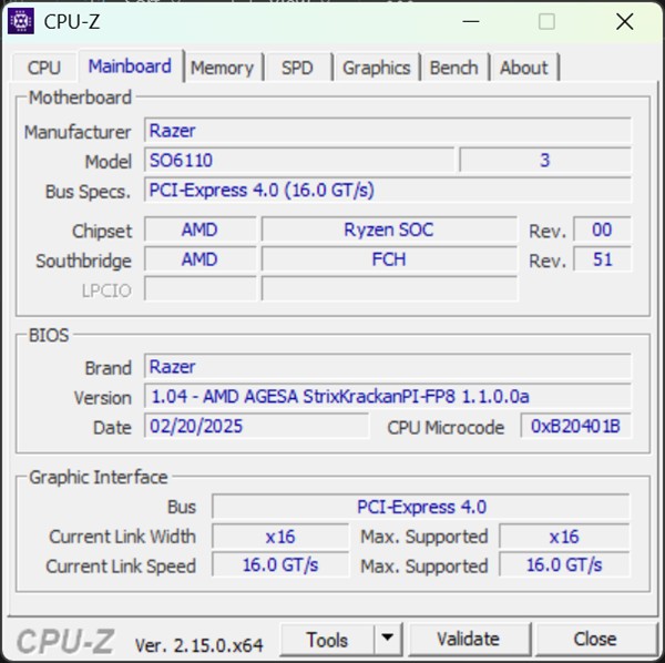 În fine, acest articol nu este neapărat despre Razer Blade 16, ci despre piesa de rezistență din centrul ansamblului hardware, mai precis despre NVIDIA GeForce RTX 5090 Laptop. Sigur că această componentă nu face neapărat minuni chiar de una singură, așa că în ajutorul ei vine un procesor AMD Ryzen AI 9 HX 370 și 32 GB memorie LPDDR5. SSD-ul este de 2TB, iar câteva informații despre întreg ansamblul hardware al laptopului sunt prinse în capturile de ecran de mai jos:
