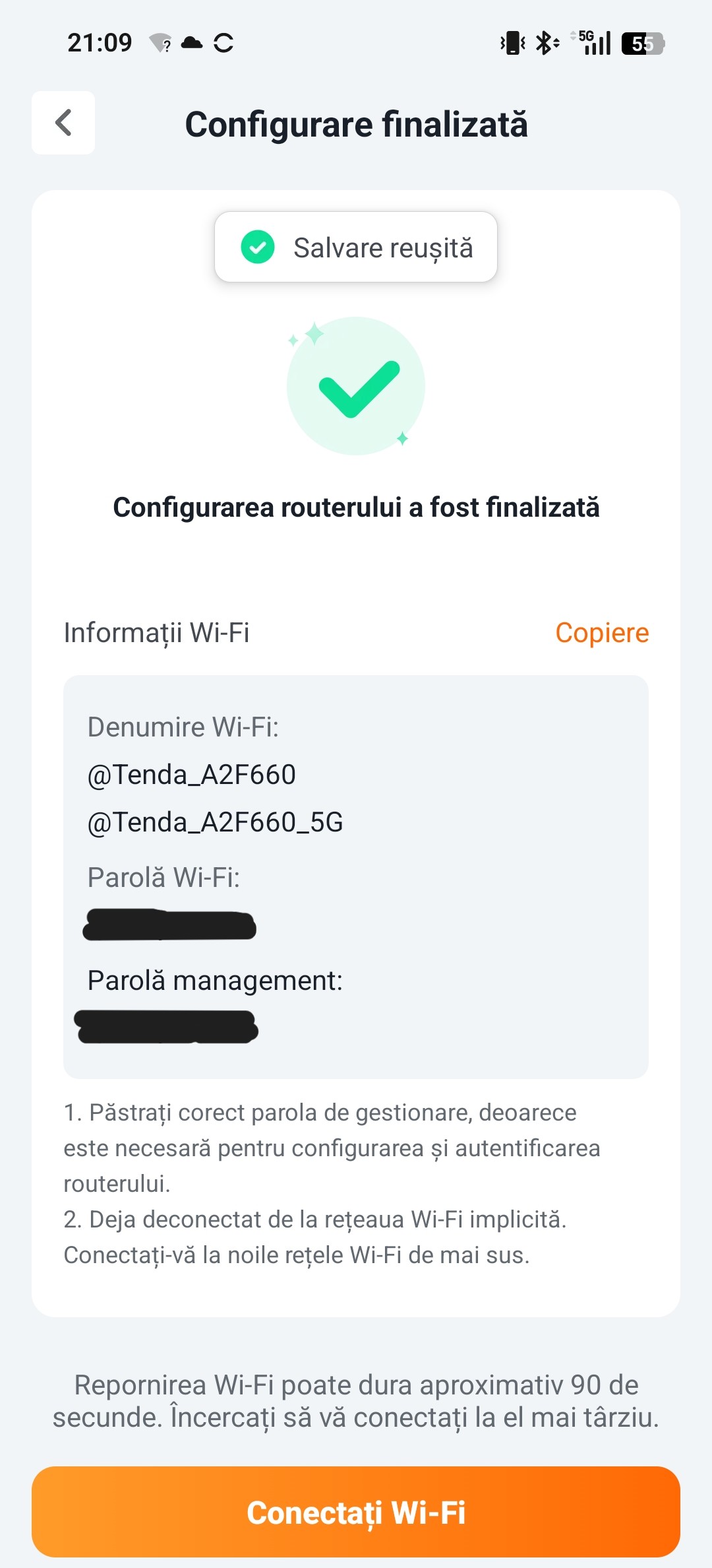 Trecând mai departe la utilizare, pot spune că instalarea inițială a fost pe cât se poate de facilă. Am folosit aplicația dedicată de smartphone Tenda WiFi și după doar 3 – 4 minute aveam totul gata. Sunt numai câțiva pași pe care trebuie să-i parcurgi, totul este simplu și corect explicat în fiecare etapă, iar la final, tot din aplicație poți face multiple alte setări, în funcție de cât de avansat ești ca utilizator. Cert este că poți lăsa totul standard, cum s-ar spune, moment în care Tenda TE6L Pro funcționează ireproșabil, sau poți face fel de fel de ajustări, repet, în funcție de cât de tare te pricepi. Sunt multe opțiuni disponibile, așa că poți avea totul așa cum îți dorești.