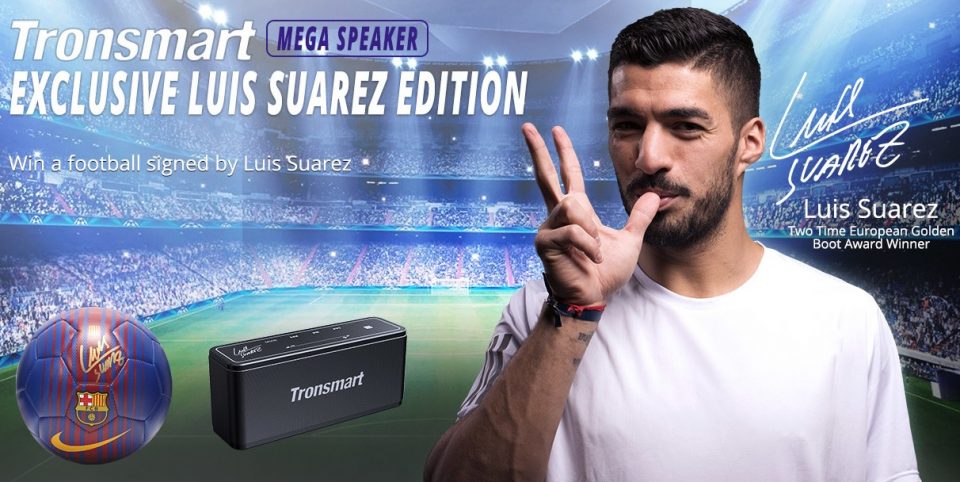 Parteneriatul Tronsmart – Luis Suárez are şi un prim rezultat şi anume boxa portabilă ediţie limitată Tronsmart Element Mega Exclusive Luis Suarez Edition. Acesta are inscripţionată semnătura fotbalistului, vine cu conectivitate bluetooth 4.2, NFC, o putere audio totală de 40W, o frecvenţă de răspuns cuprinsă între 115HZ şi 13KHz şi o baterie de 3300 mAh ce promite o audiţie completă de până la 15 ore.