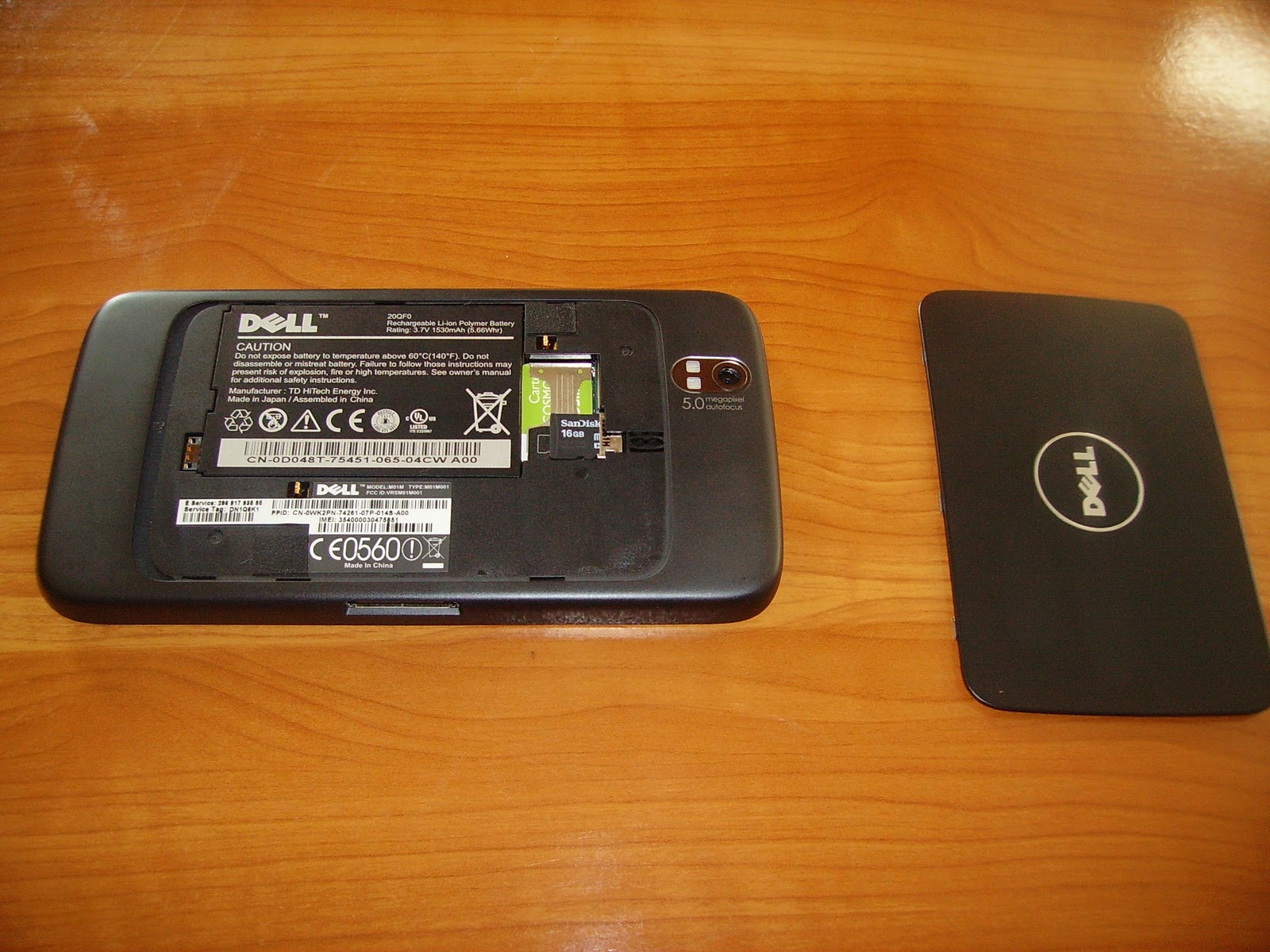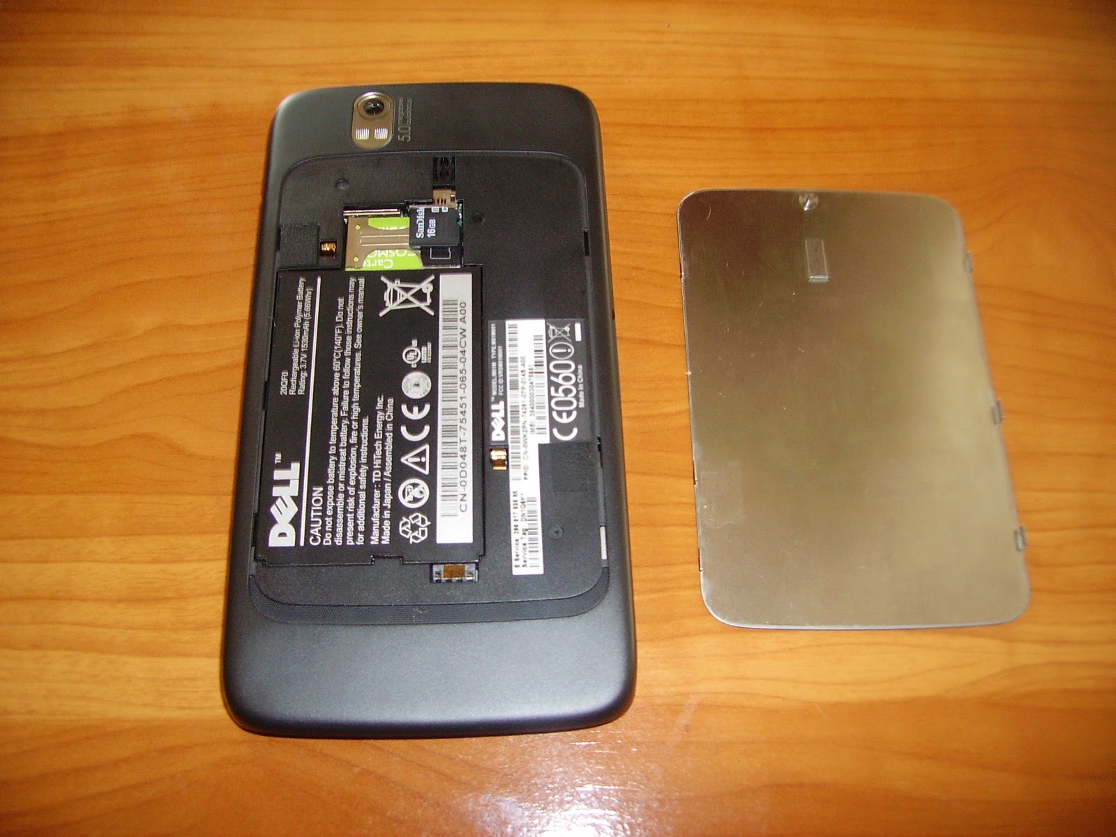 Dell a abordat un design fără prea multe brizbrizuri. Modelul pe care îl am în test vine într-o culoare neagră, mată pe spatele carcasei şi lucioasă în zona ecranului TFT. În partea superioară veţi observa camera secundară de 0,3 Megapixeli iar la bază 3 butoane sensibile la atingere cu rol de Home, Scurtătură pentru organizarea display-ului, Back. Pe lateral stânga este doar mufa pentru încărcarea bateriei de 1530 mAh iar pe lateral dreapta sunt butoanele pentru reglarea volumului, blocarea şi deblocarea touchscreenului şi cel pentru activarea camerei foto de 5 Megapixeli. Capacul de pe spate este din metal şi se deschide foarte uşor. După desfacerea sa pe lângă baterie veţi da şi de sloturile pentru cartela sim şi microSD după cum se şi vede în imagini. Este un device realizat ca la carte fără a-i putea aduce reproşuri d.p.d.v. estetic.