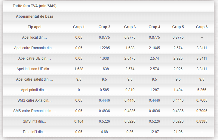 Important de precizat – în cei 2 euro sunt prinse minute în rețelele AKTA pe fix și mobil. Nu am găsit detalii legate de minutele respective, pentru beneficii naționale trebuie activate opțiunile.