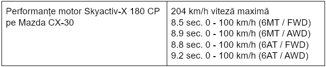 Performanțe motor Mazda Skyactiv-X 180 pe Mazda CX-30 2019 – model de preserie: