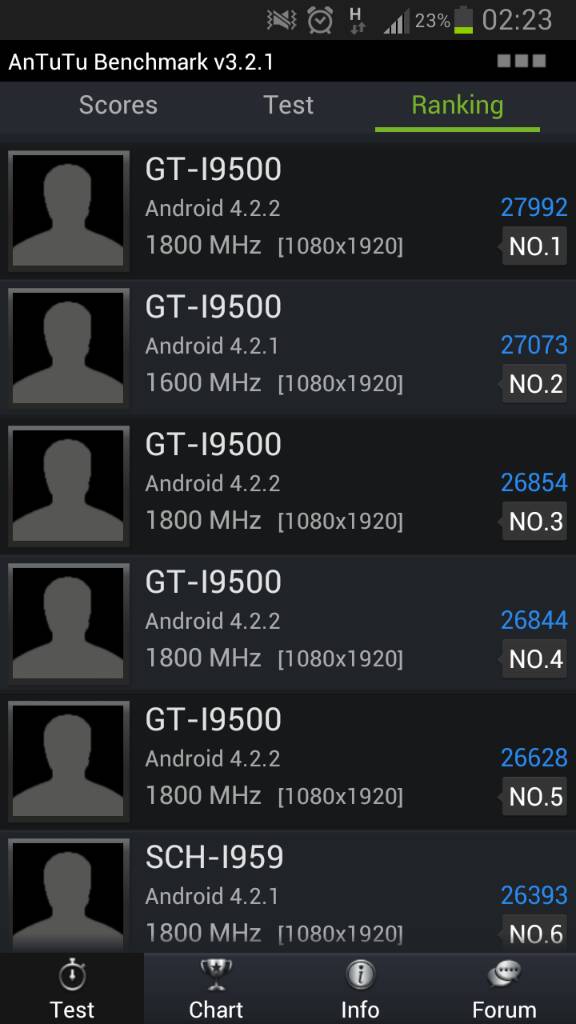 Update 1: Se pare că Samsung-ul cu Exynos 5 Octa nu a fost testat. Nu ar fi niciun test de benchmark. Revin cu un update cât de curând. Și când mă gândesc că în comunicatele de presă se scria de SGS 4 cu Exynos 5 Octa, iar pe la site-urile de specialitate nu a ajuns decât cel cu Snapdragon 600 de care s-a auzit prima dată în urmă cu 5 – 6 zile și de care nu s-a spus nimic în niciun comunicat, etc.