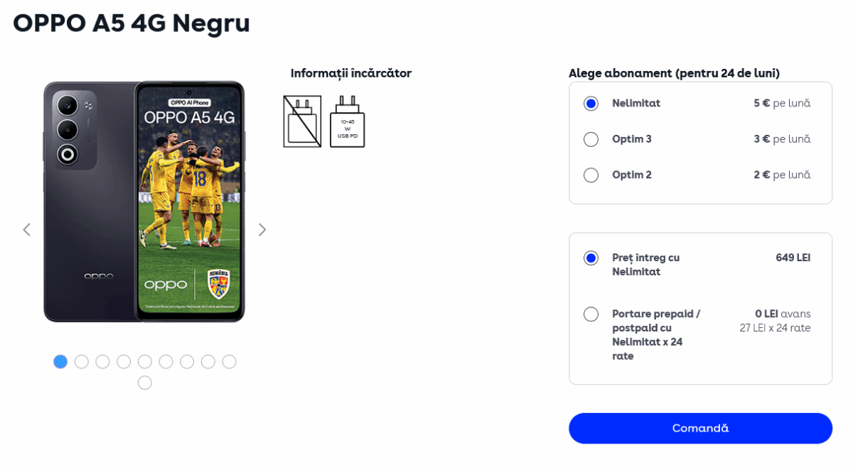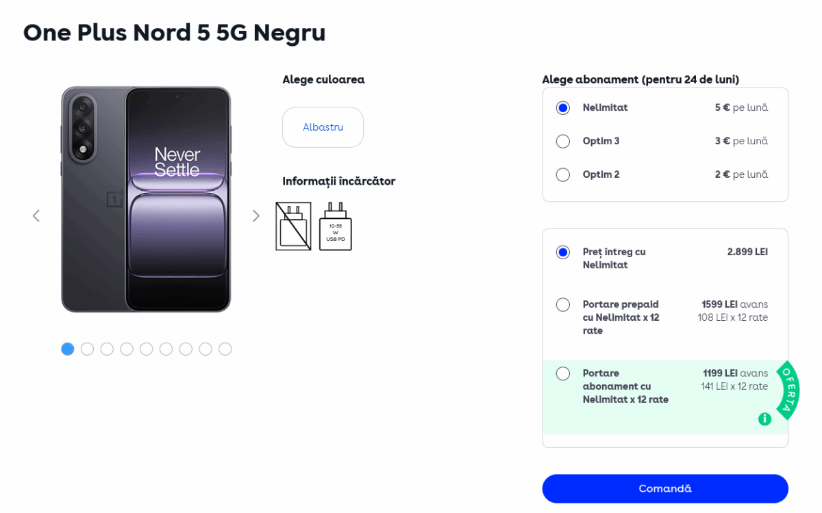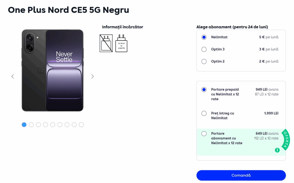 - Portare abonament către un pachet Digi Optim / Nelimitat – 649 lei avans şi 12 rate x 112 lei / lună.
