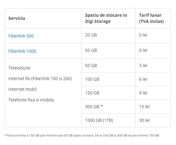 Planurile tarifare pentru Digi Storage: