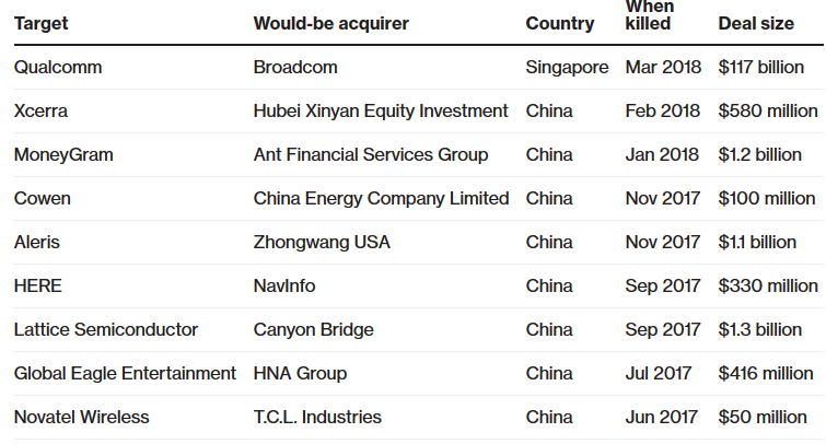 Preşedintele Statelor Unite ale Americii a afirmat că preluarea Qualcomm de către Broadcom reprezintă un risc pentru securitatea naţională. Broadcom este cunoscută drept o companie mai conservatoare, iar în cazul unei achiziţii ar putea reduce investiţiile în cercetare-dezvoltare, în special în zona tehnologiei 5G acolo unde Qualcomm este lider în acest moment. Aceste reduceri ar putea permite celor de la Huawei să preia poziţia de lider în acest domeniu al viitorului.