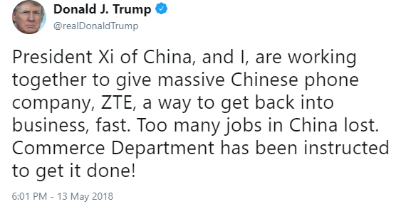 Se pare că în cazul ZTE s-a implicat însuşi Xi Jinping, preşedintele Chinei, care a reuşit într-un fel sau altul să îl îmbuneze pe Donald Trump. În urmă cu doar câteva ore, preşedintele american a scris pe faimosul său cont de Twitter că: “Eu şi preşedintele Chinei lucrăm împreună la găsirea unei soluţii rapide de a readuce ZTE în activitate. Prea multe locuri de muncă s-au pierdut în China. Departamentul de Comerţ a fost instruit să rezolve această situaţie.”