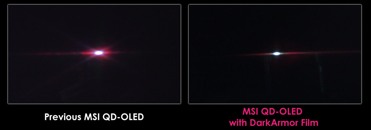 DarkArmor Film – tehnologie specializată de film spre a îmbunătăți absorbția luminii și spre a elimina nuanțele de violet sau roșiatic (întâlnite pe panourie QD-OLED sub lumina ambientală). Nivelul de negru pur este crescut cu până la 40% conform MSI, iar contrastul și imaginea sunt îmbunătățite. Crește și duritatea suprafeței ecranului de la 2H la 3H și ar rezista la zgârieturi de 2.5 ori mai bine.
