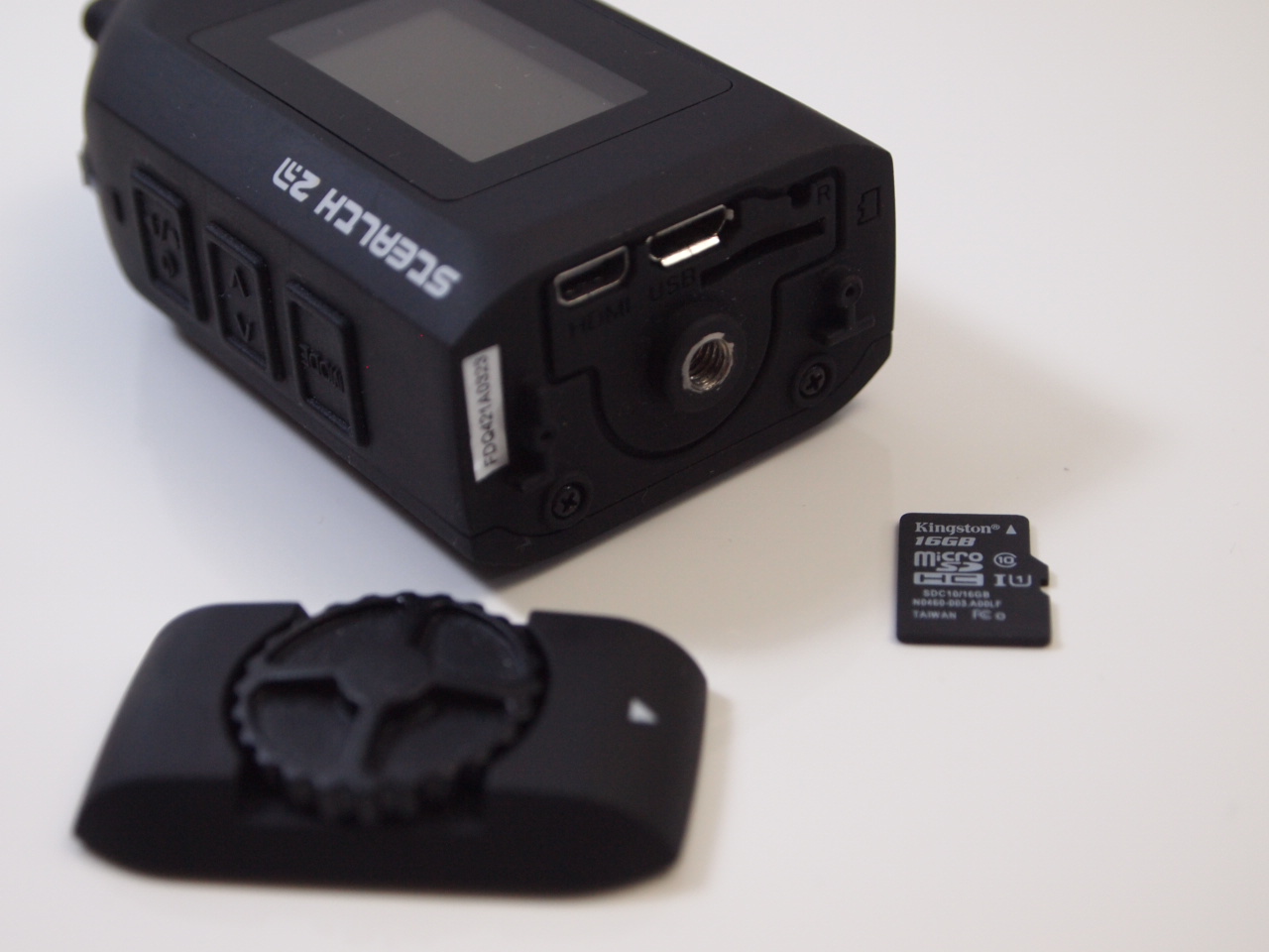 Pentru a avea acces la slotul microSD sau la porturile microUSB și micro HDMI, trebuie desfăcut un capac situat pe partea din spate a camerei, prin deșurubarea unei rotițe. Capacul este prevăzut cu o garnitură de cauciuc și se închide ermetic, pentru a asigura rezistența la apă.